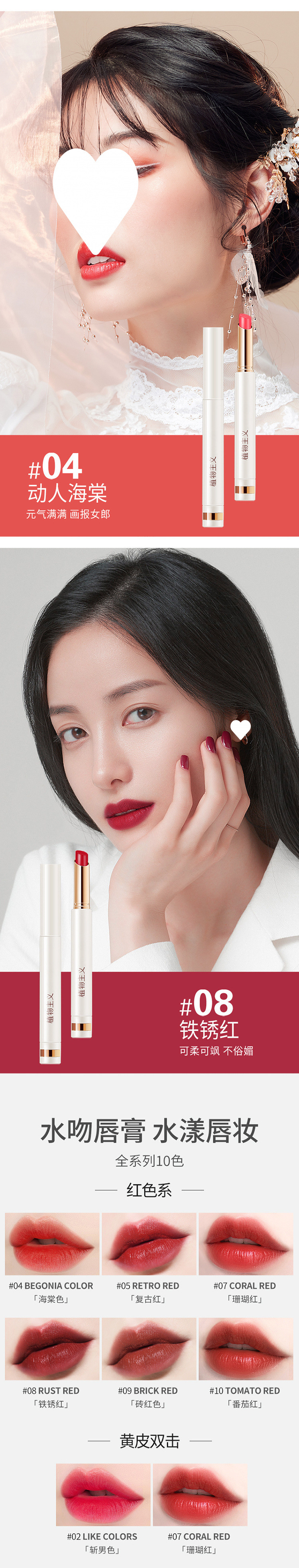 植物主义口红防水保湿滋润不易色不易沾杯显白准孕妇素颜