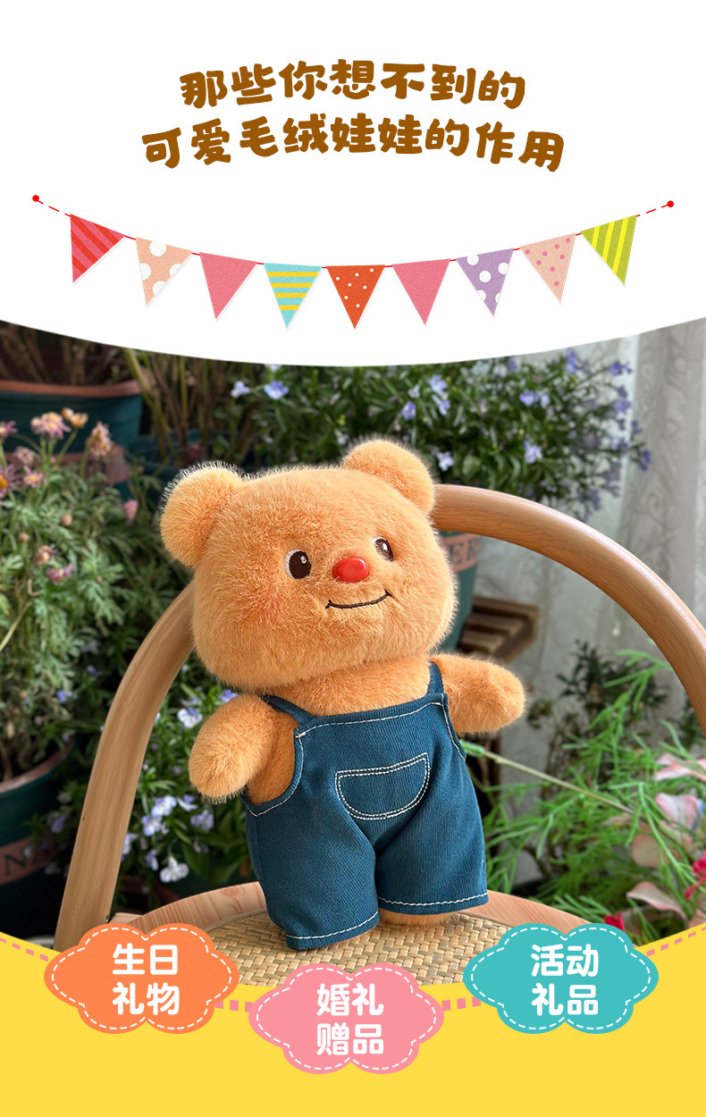 网红奶油小熊毛绒玩具可爱牛仔衣泰迪熊公仔八寸夹娃娃机娃娃