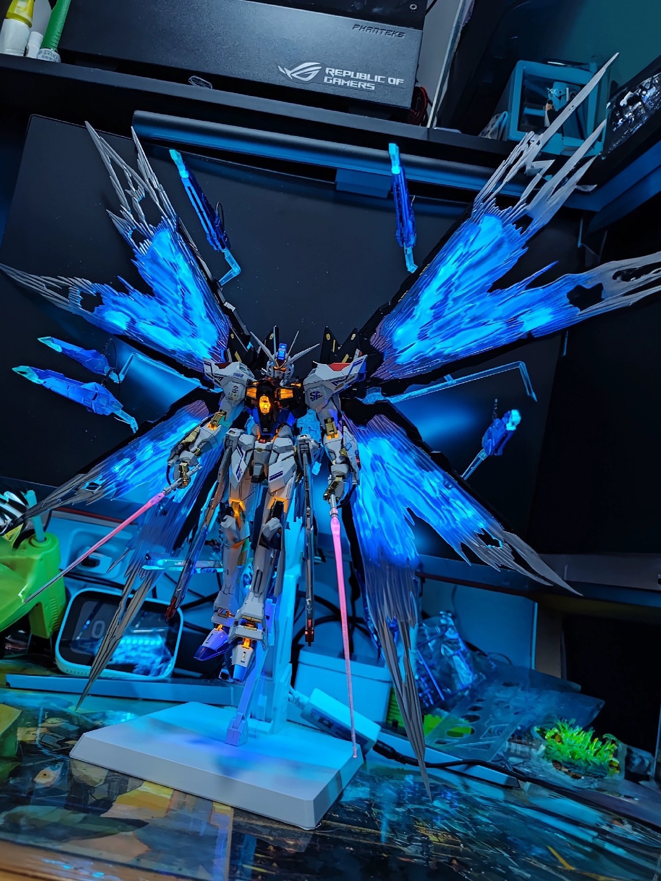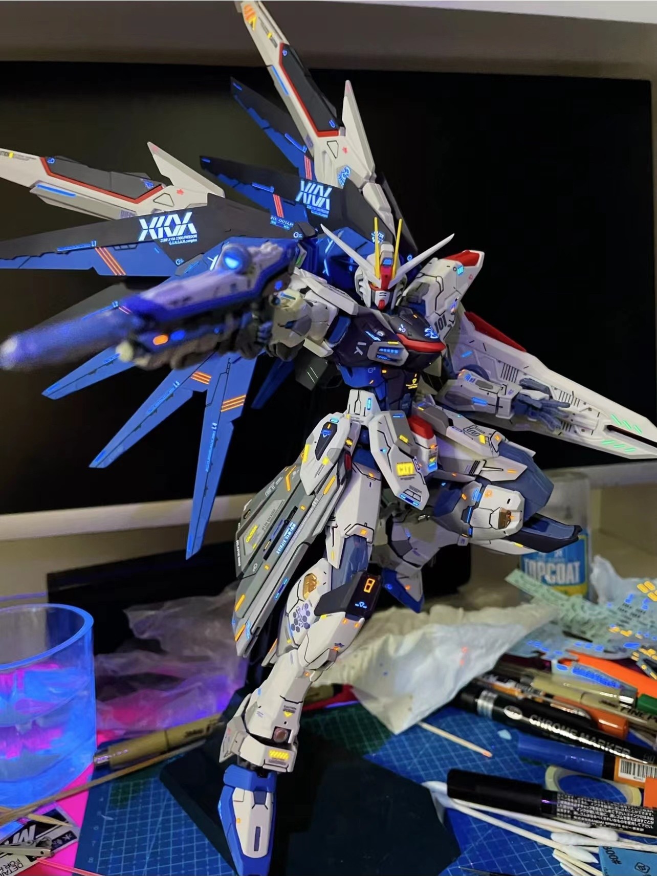 - 新生强袭自由+光翼大翅膀+光速枪+盾牌+支架-单模型+送LED灯+胶水
