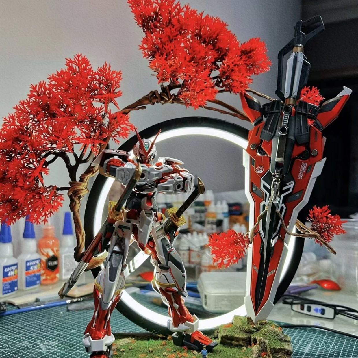 - MG红异端(镀金双刀+可变六形态大剑+支架+贴纸-单模型+工具三件套+灯