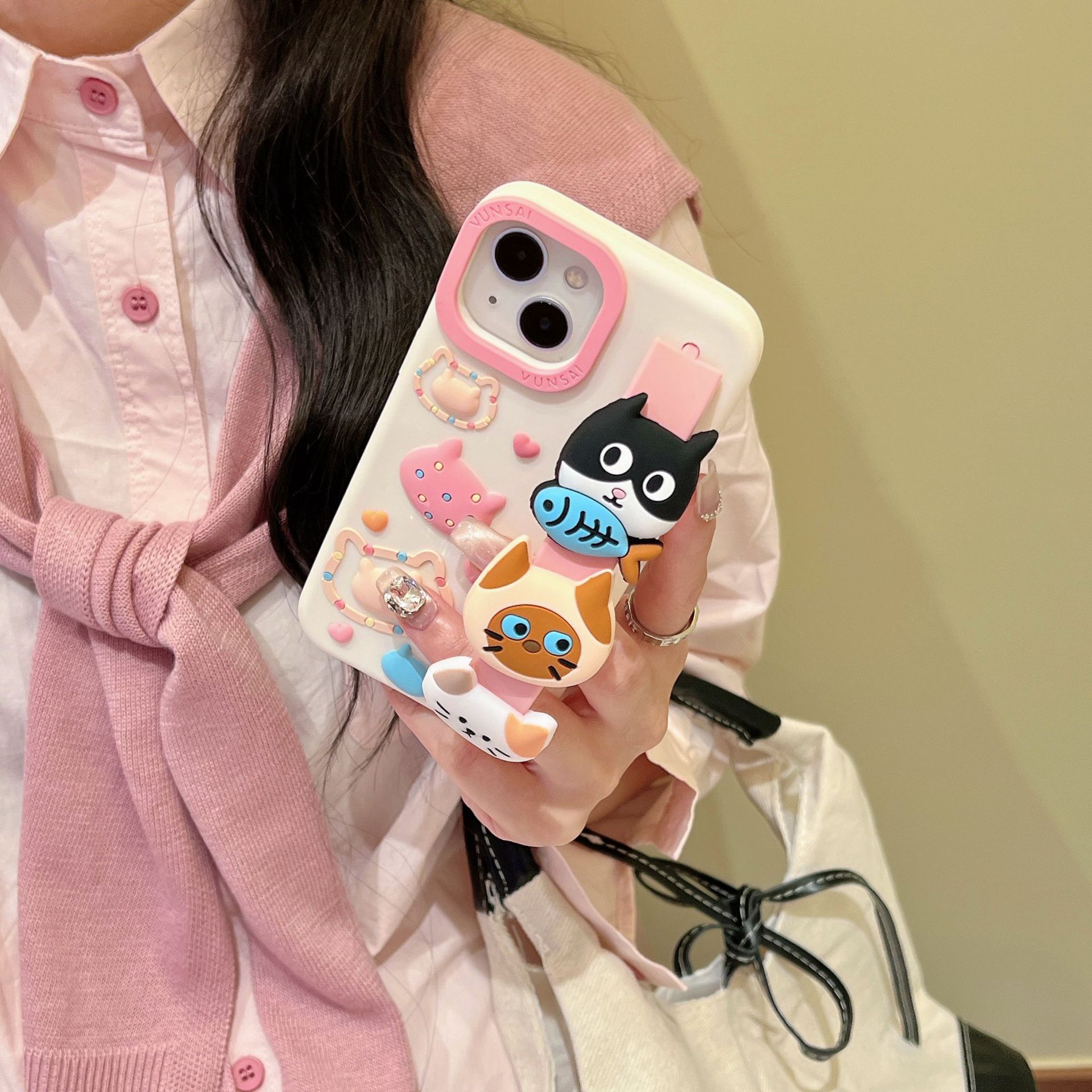 可爱搞怪表情猫咪手腕带iphone17苹果16适用14/15promax手机壳13