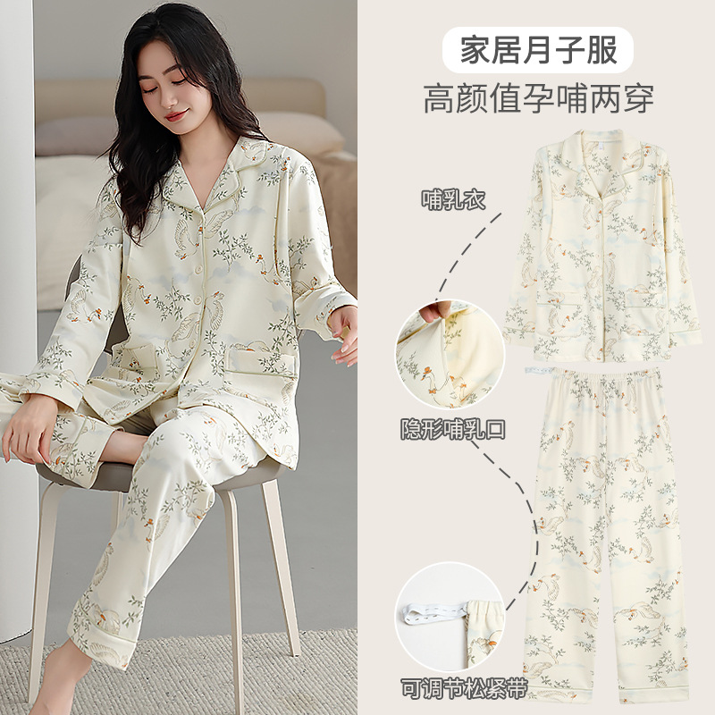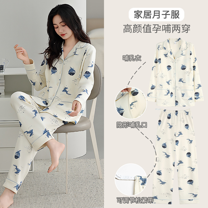 100%棉月子服a类母婴级全棉秋冬纯棉吸汗春秋孕妇产后哺乳睡衣