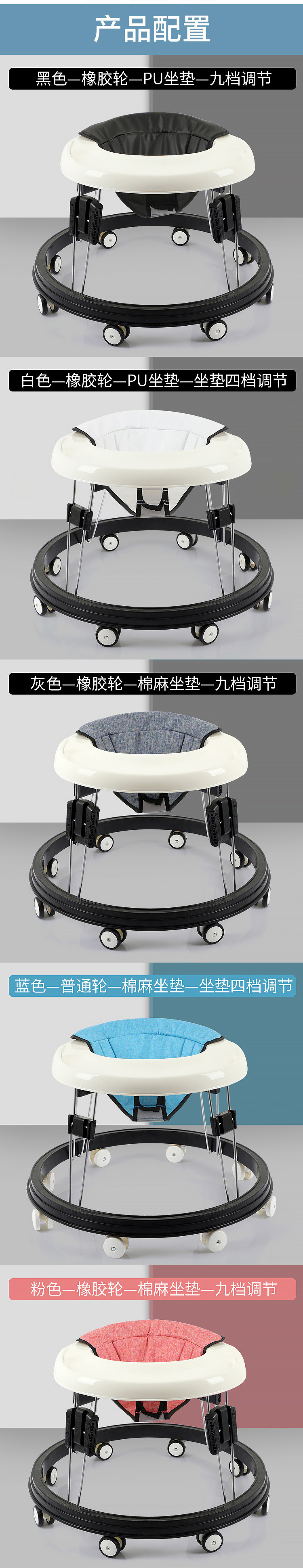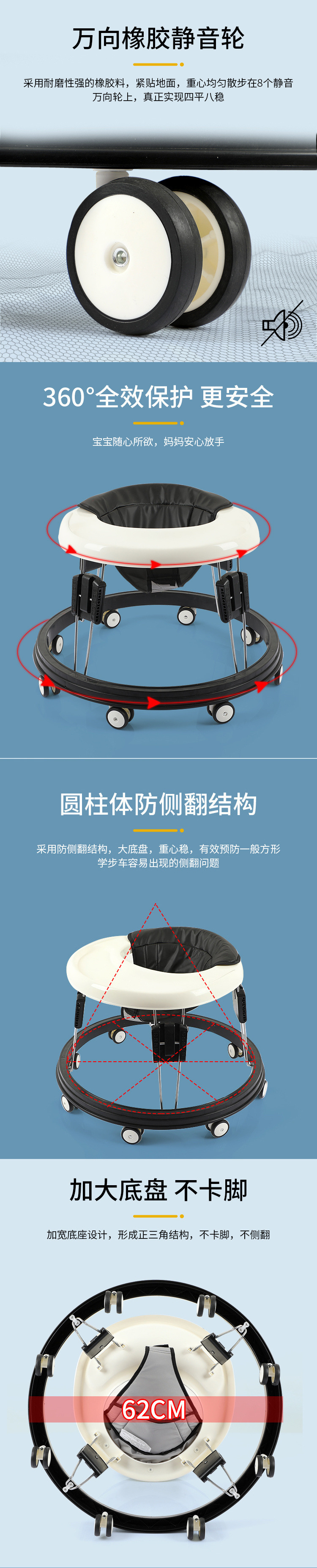 婴儿学步车儿童多功能防侧翻简约可折叠6-18个月宝宝o型助步车