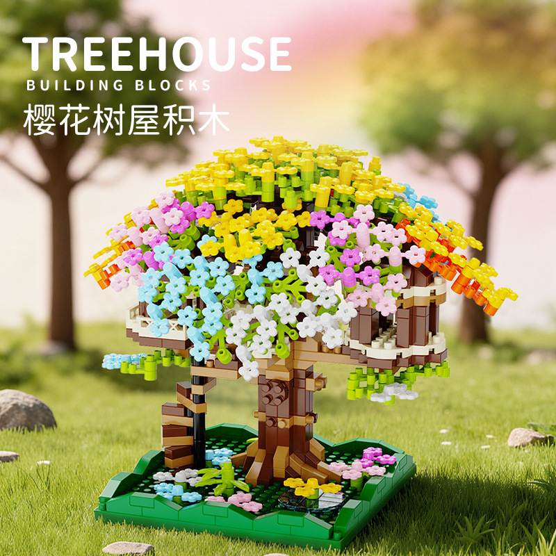 积慧M3328兼容乐高彩虹樱花树屋儿童积木拼装玩具女孩礼物男