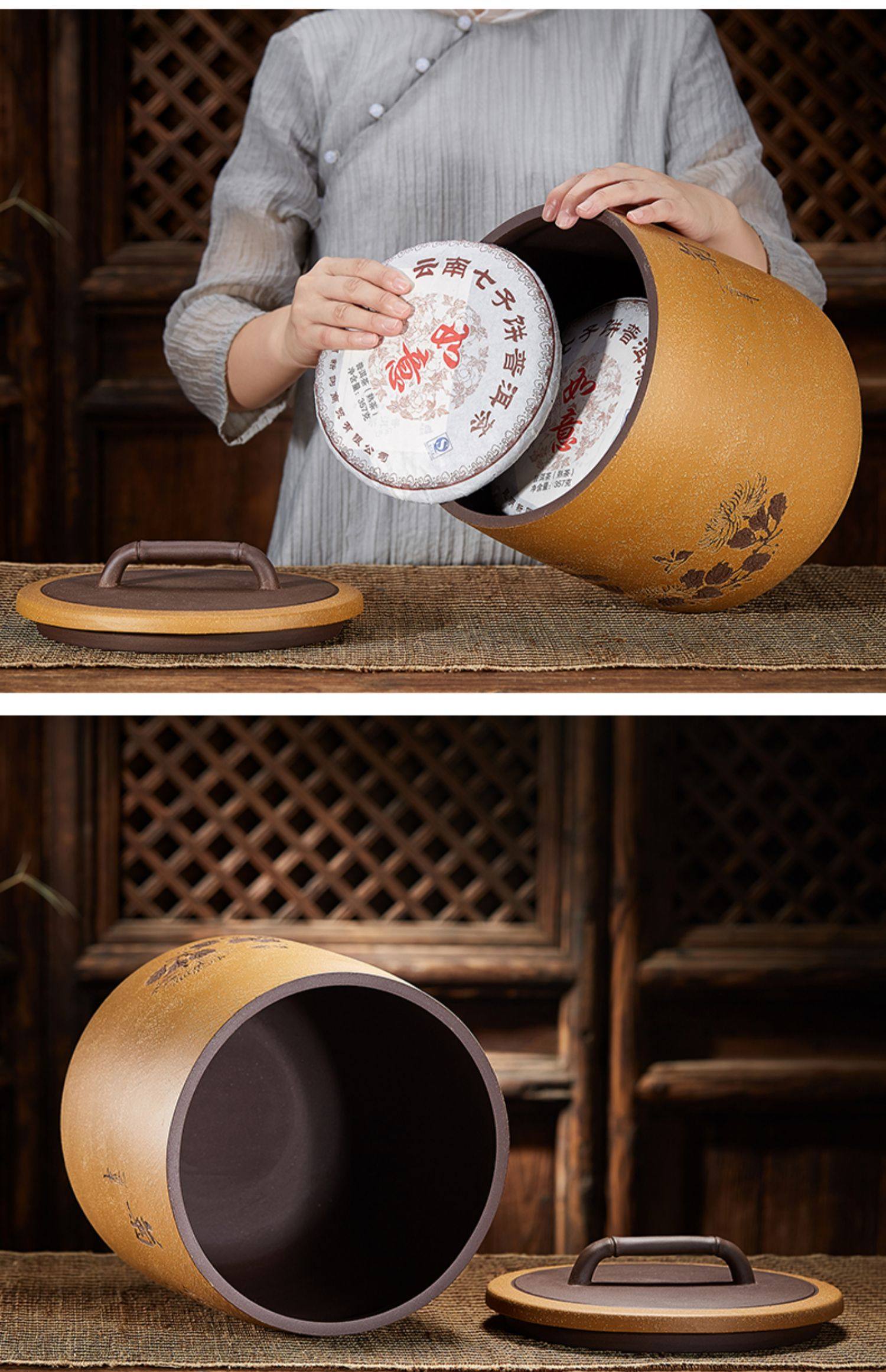 紫砂茶叶罐家用大号储存茶缸普洱茶饼收纳醒茶罐陶瓷密封罐子