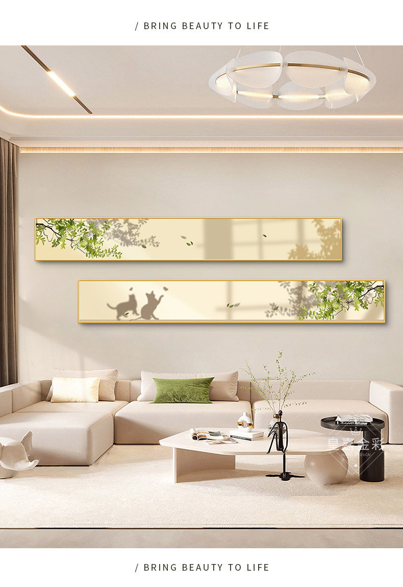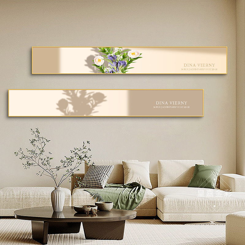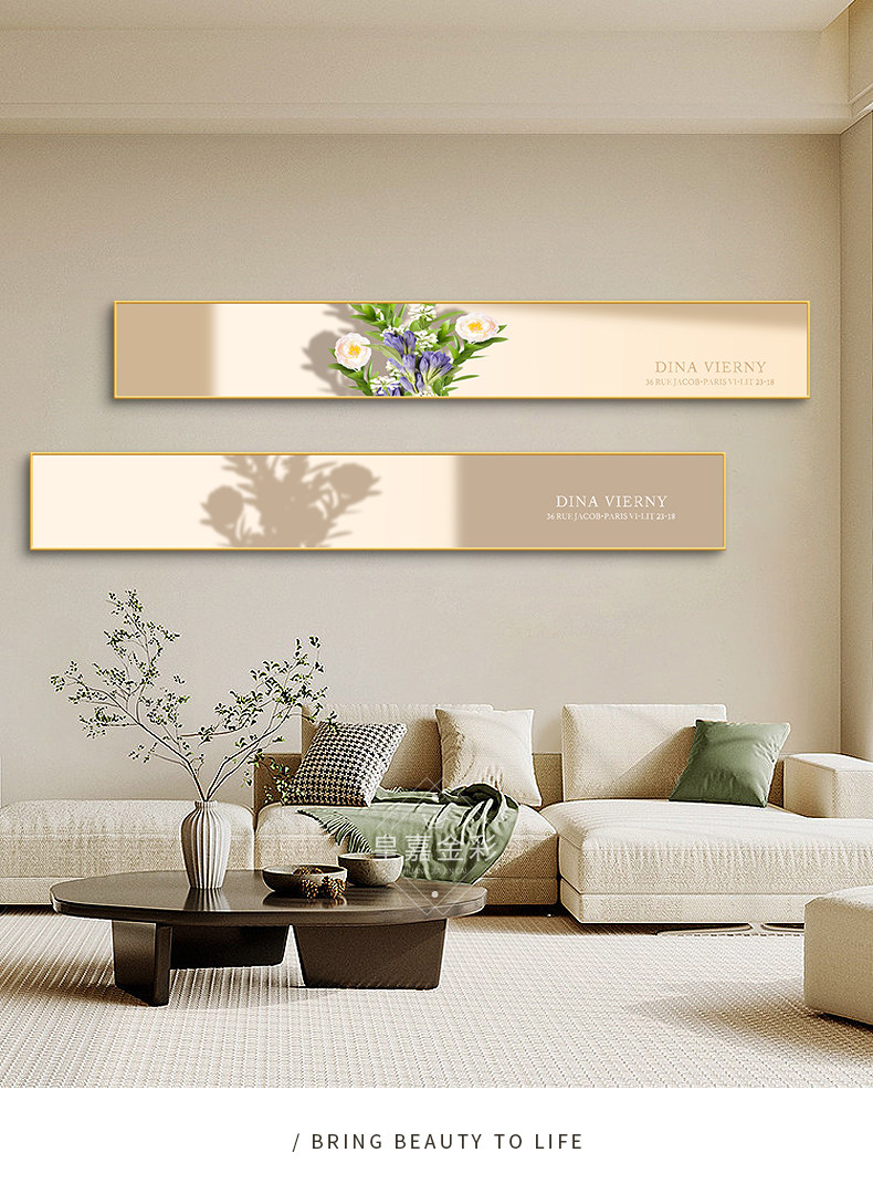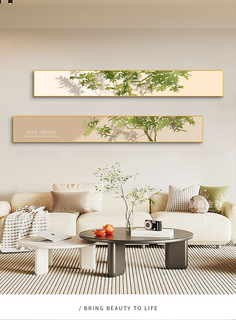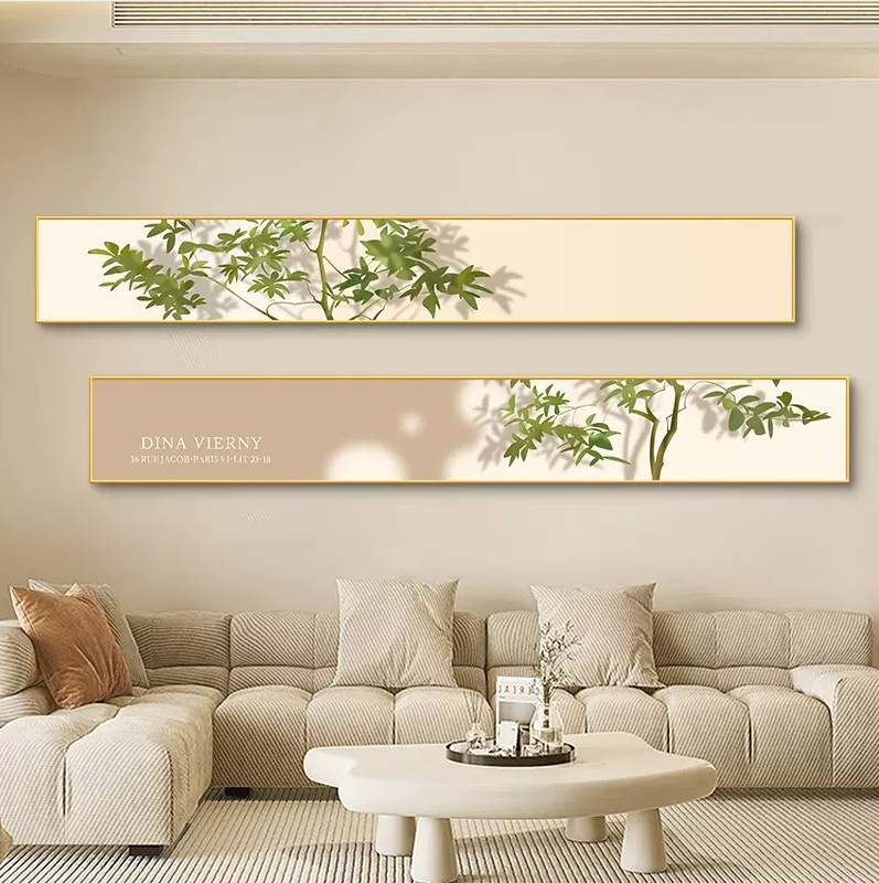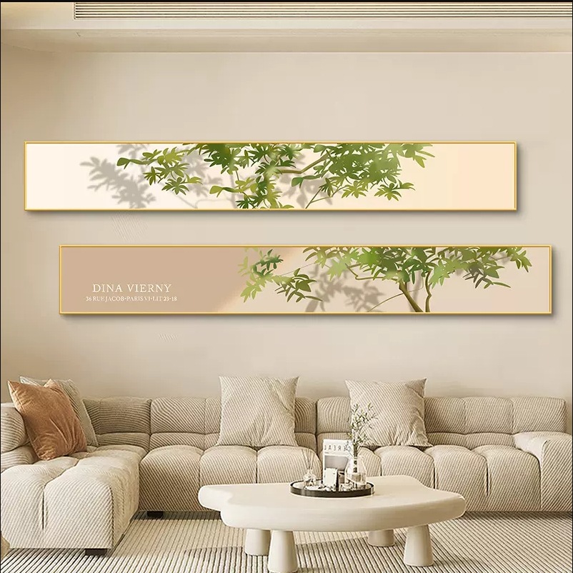 北欧风客厅装饰画小清新绿植沙发背景墙挂画现代简约双联长条壁画