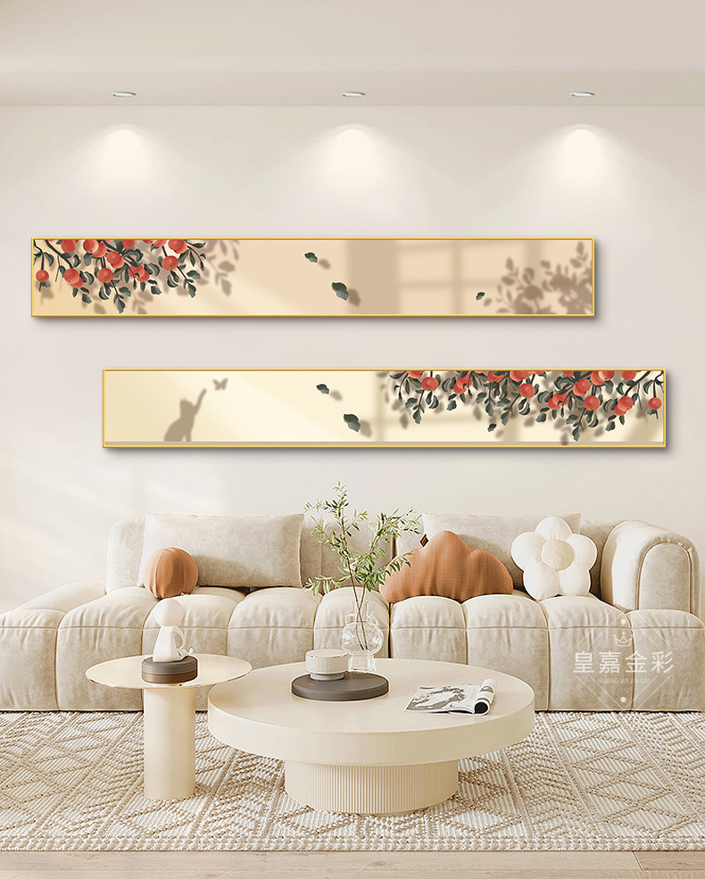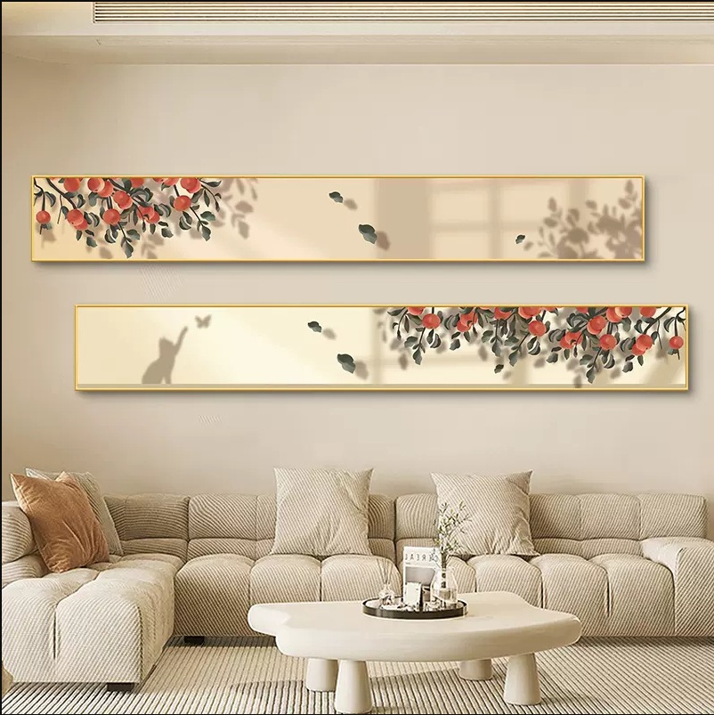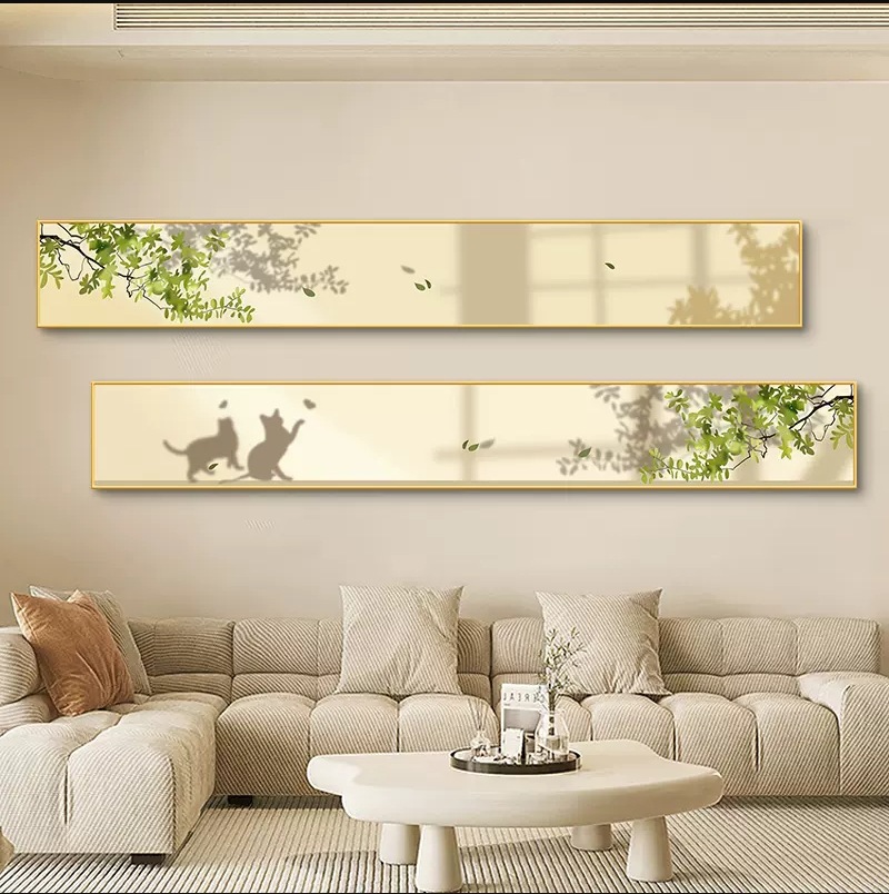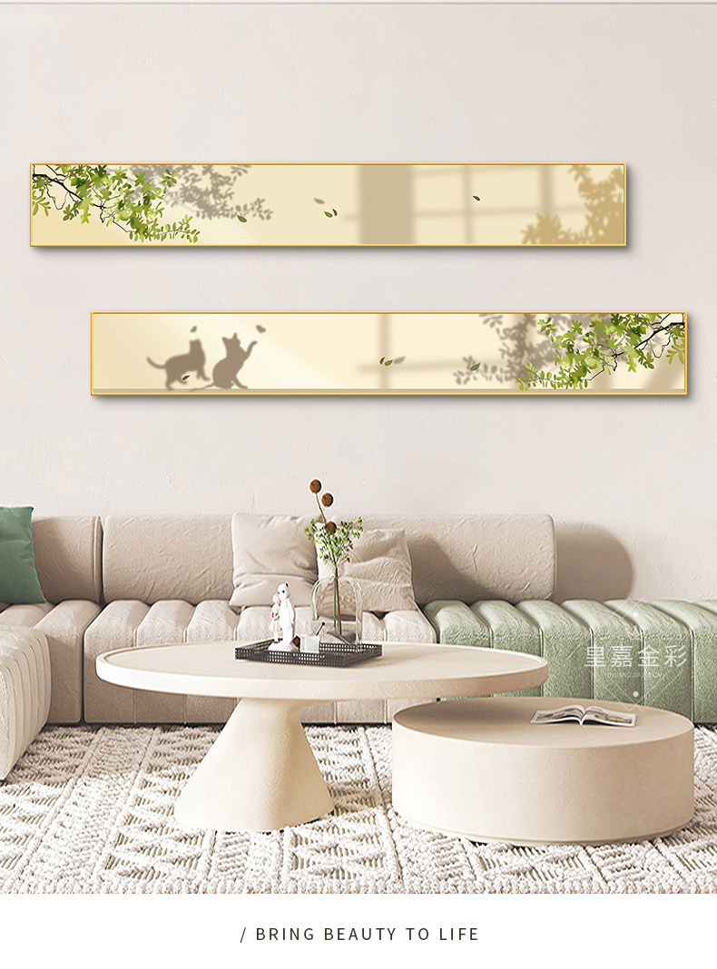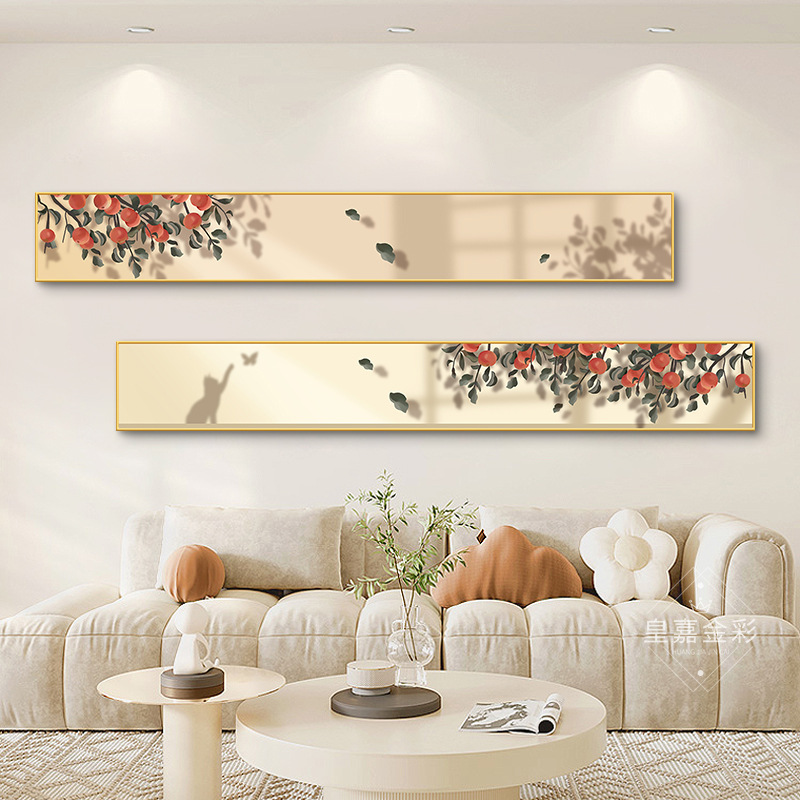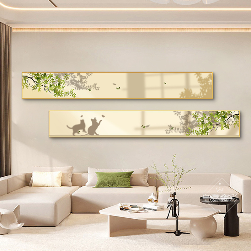 北欧风客厅装饰画小清新绿植沙发背景墙挂画现代简约双联长条壁画
