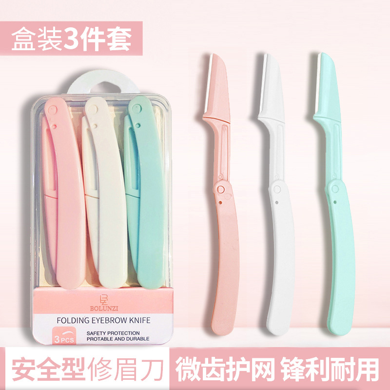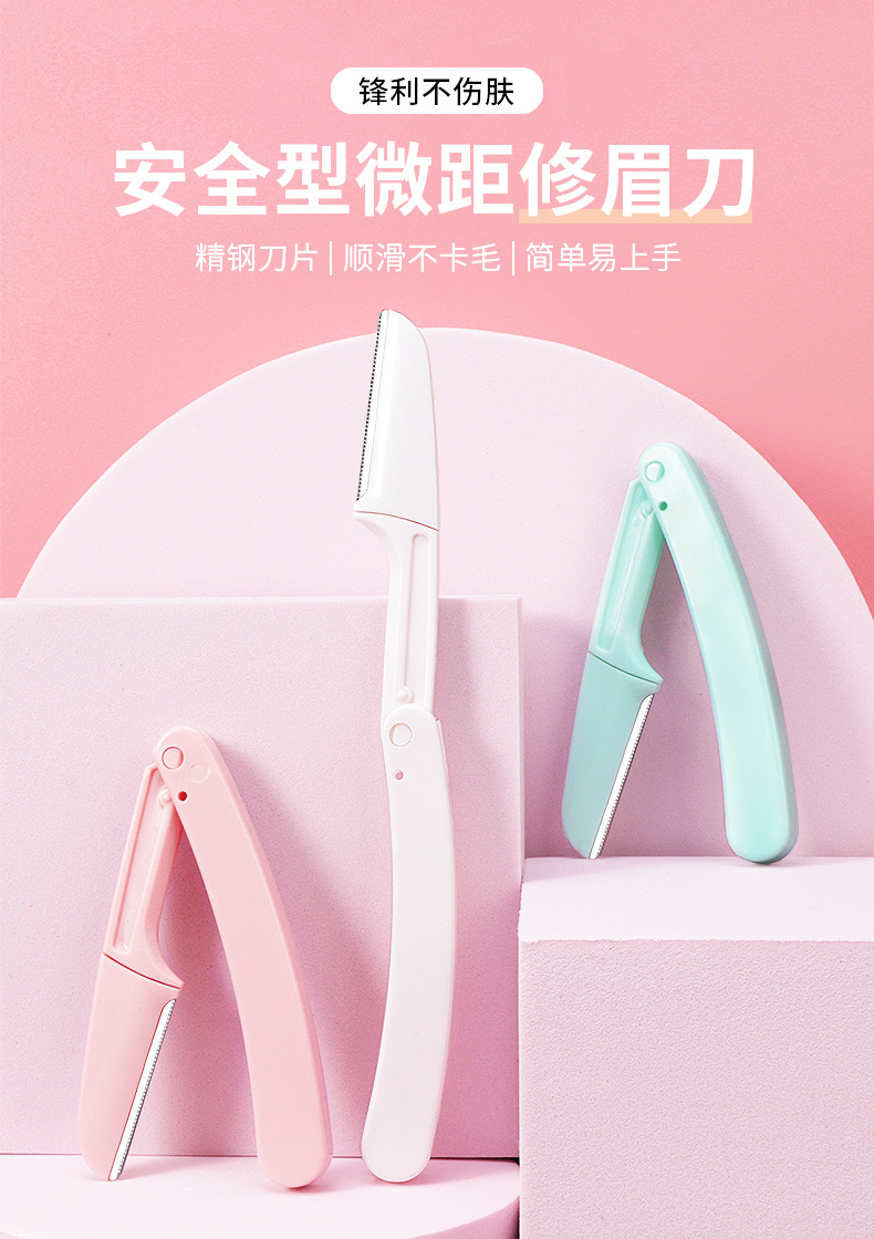 女士折叠修眉刀套装安全型刮眉刀剃眉刀防刮伤可替换刀片