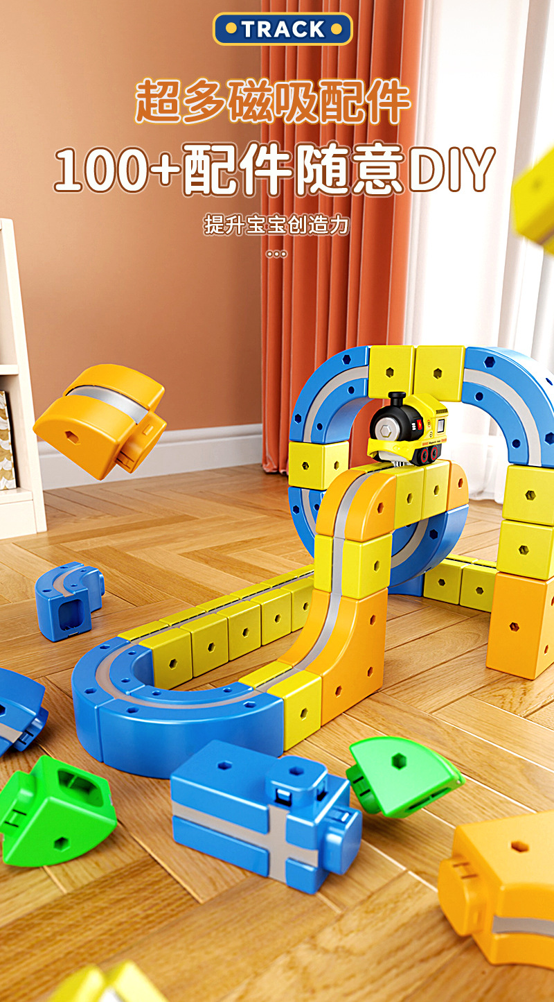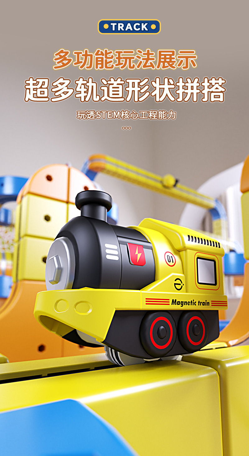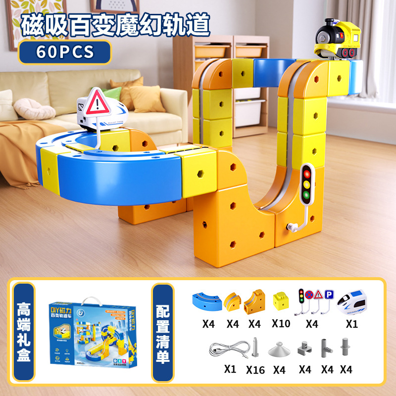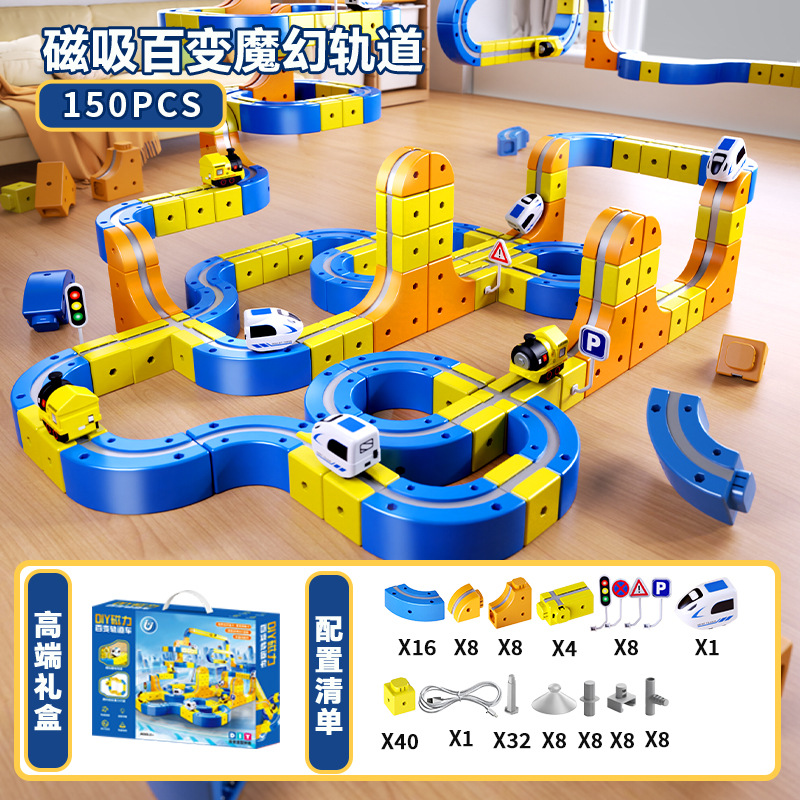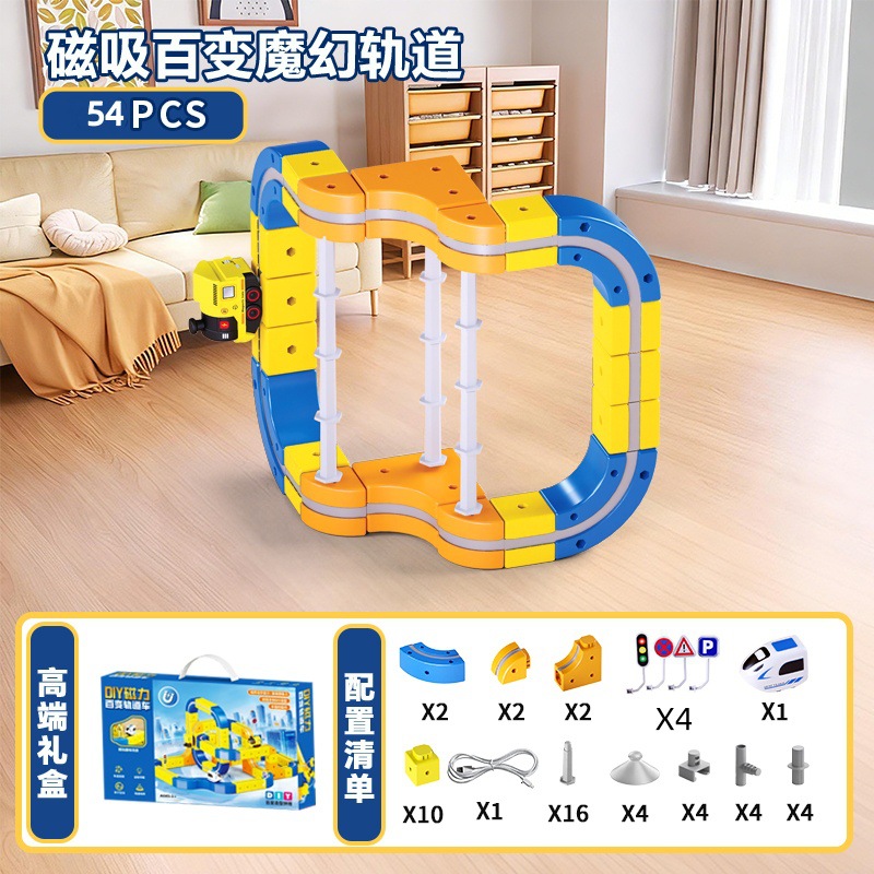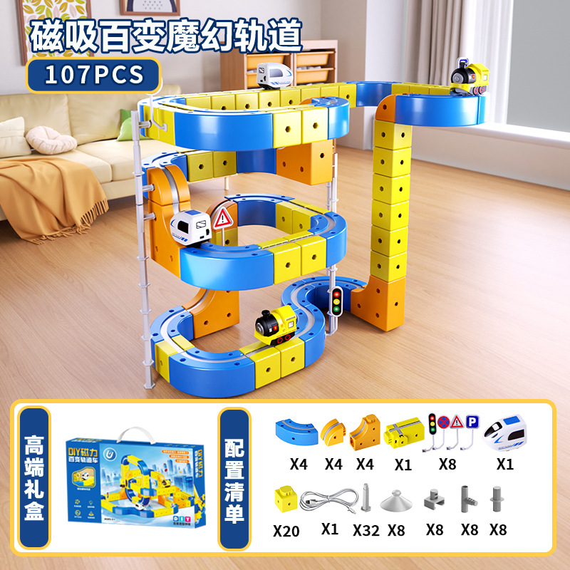 儿童百变电动磁力轨道车立体积木拼接磁性悬浮轨道火车男孩玩具车