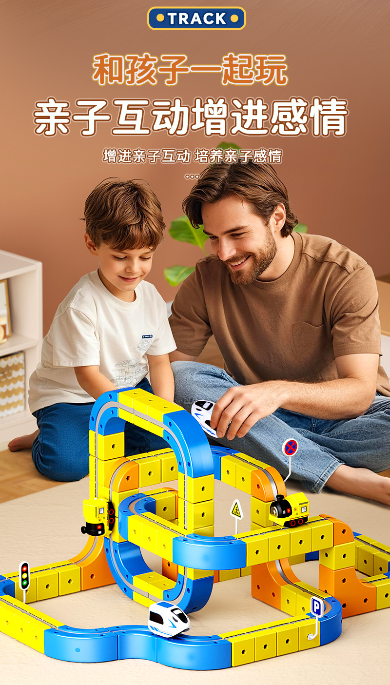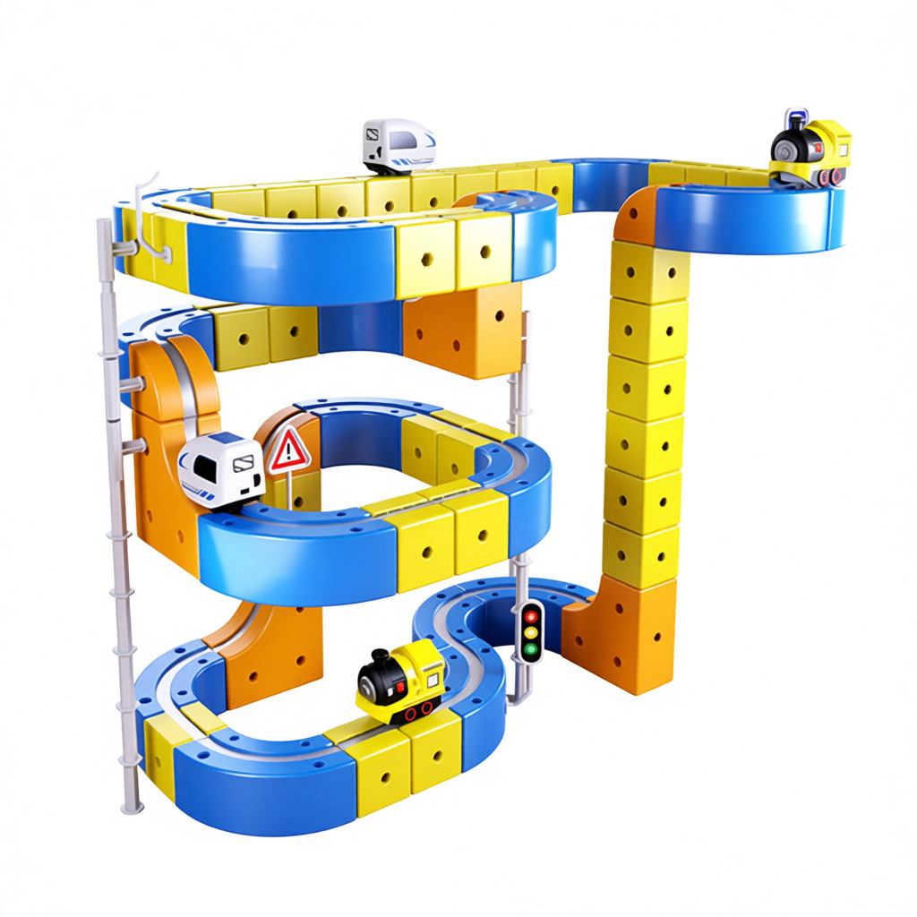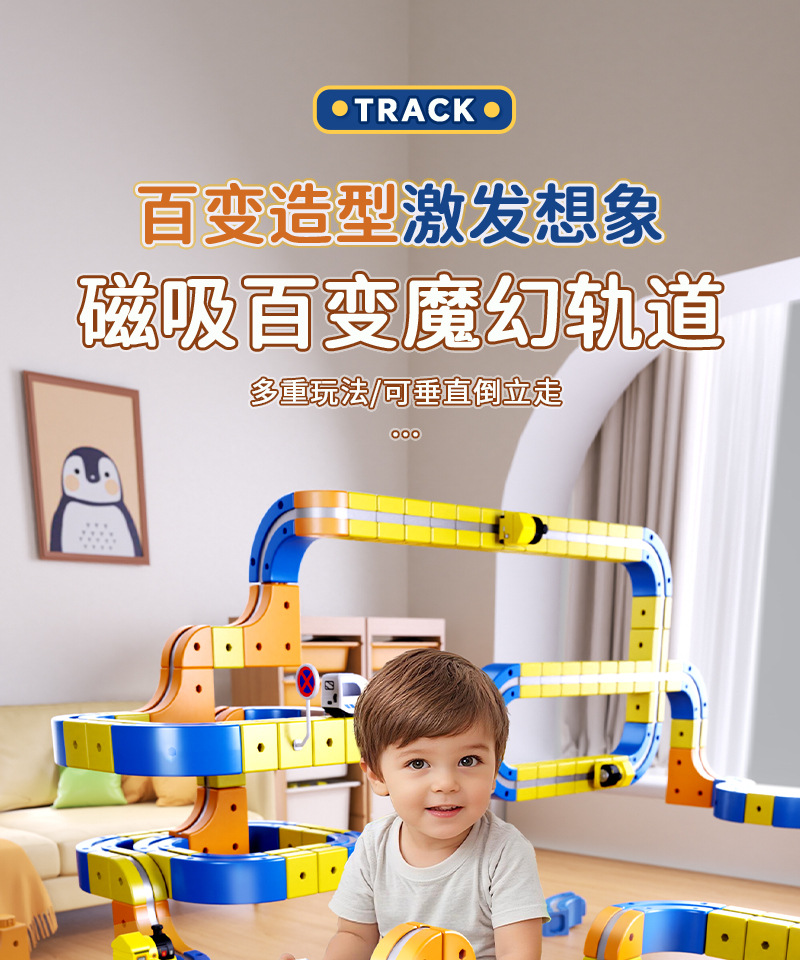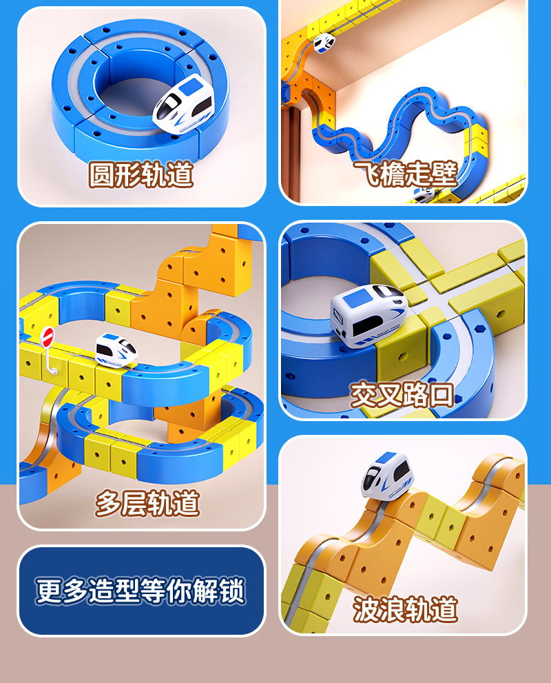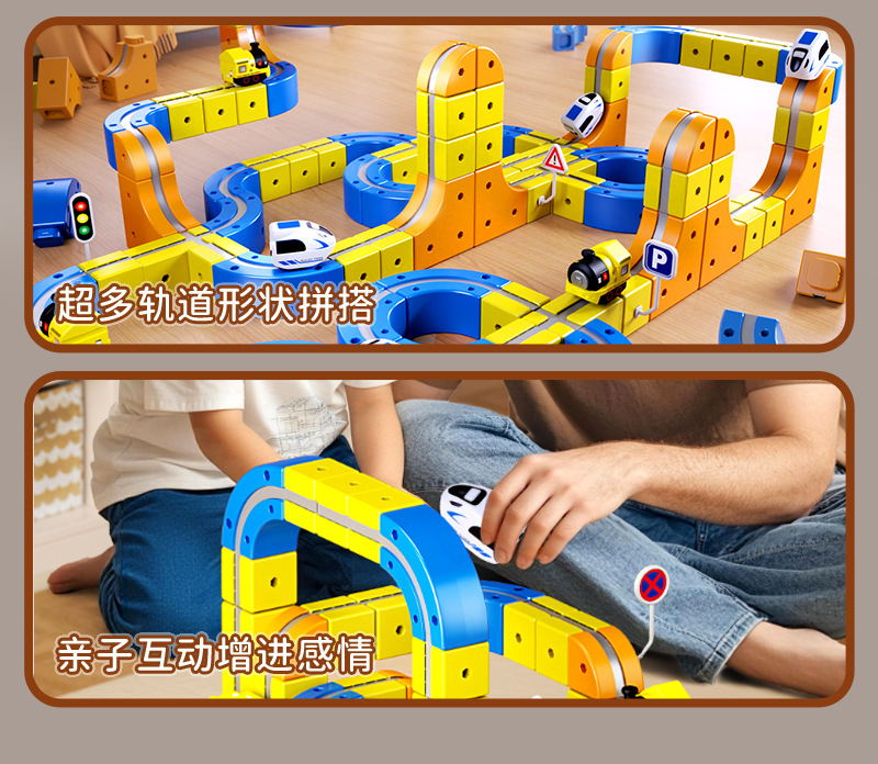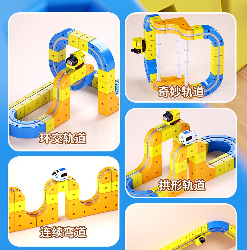 儿童百变电动磁力轨道车立体积木拼接磁性悬浮轨道火车男孩玩具车