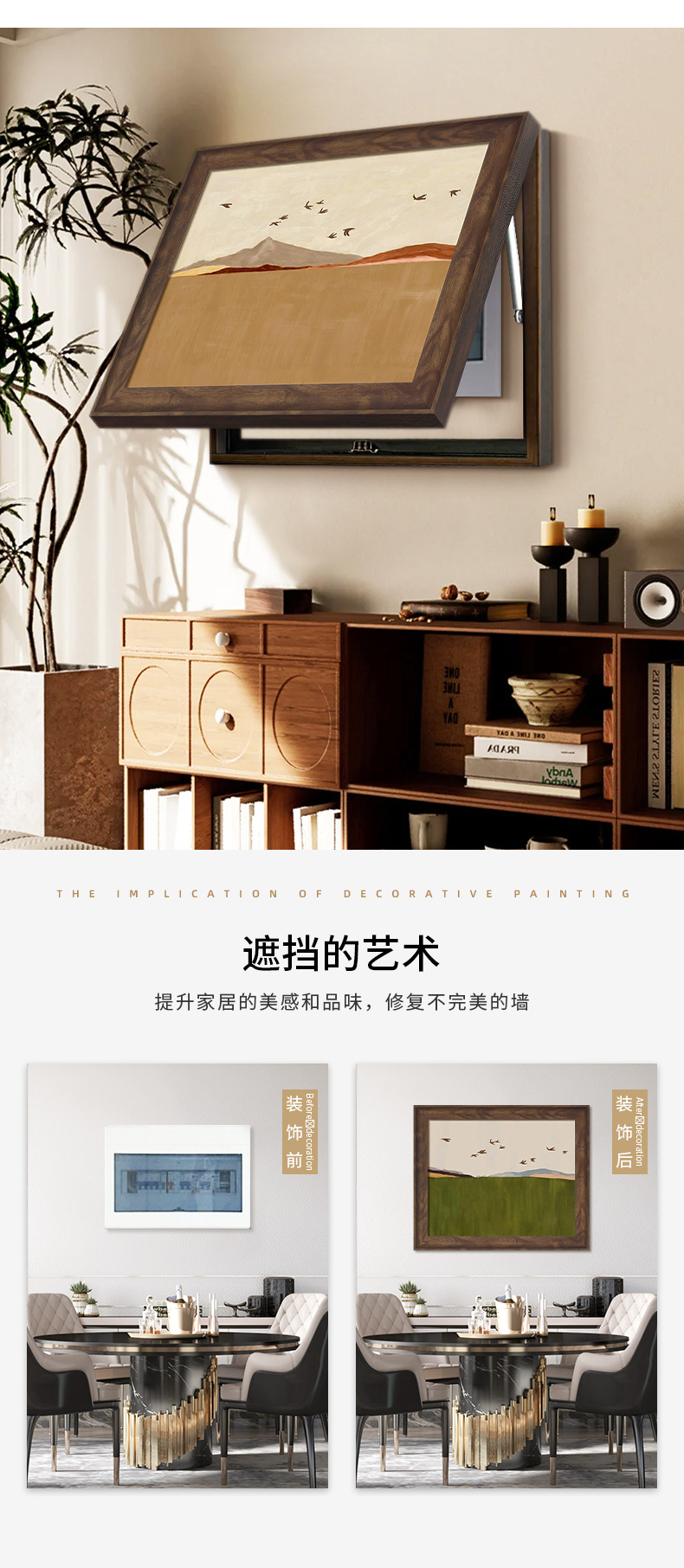 背有靠山法式中古风电表箱装饰画开关配电箱餐厅遮挡2025新款挂画