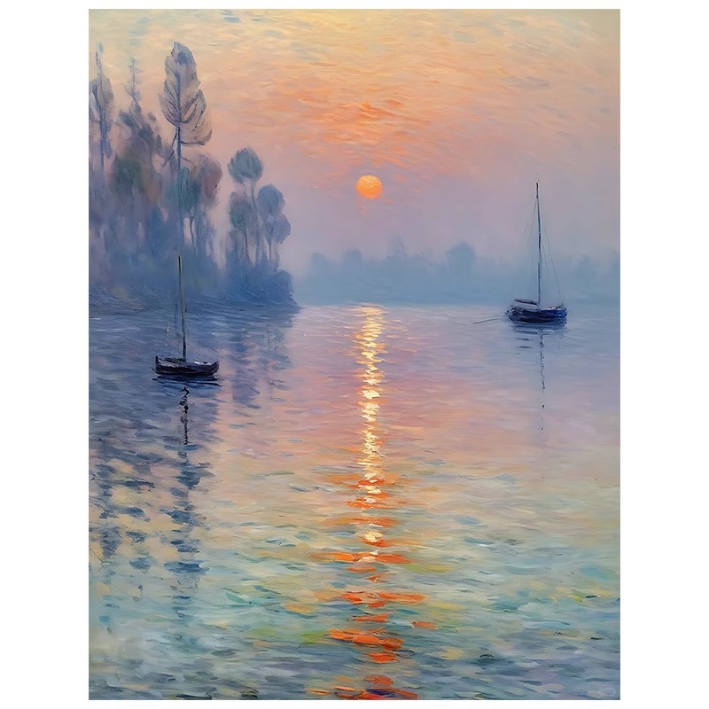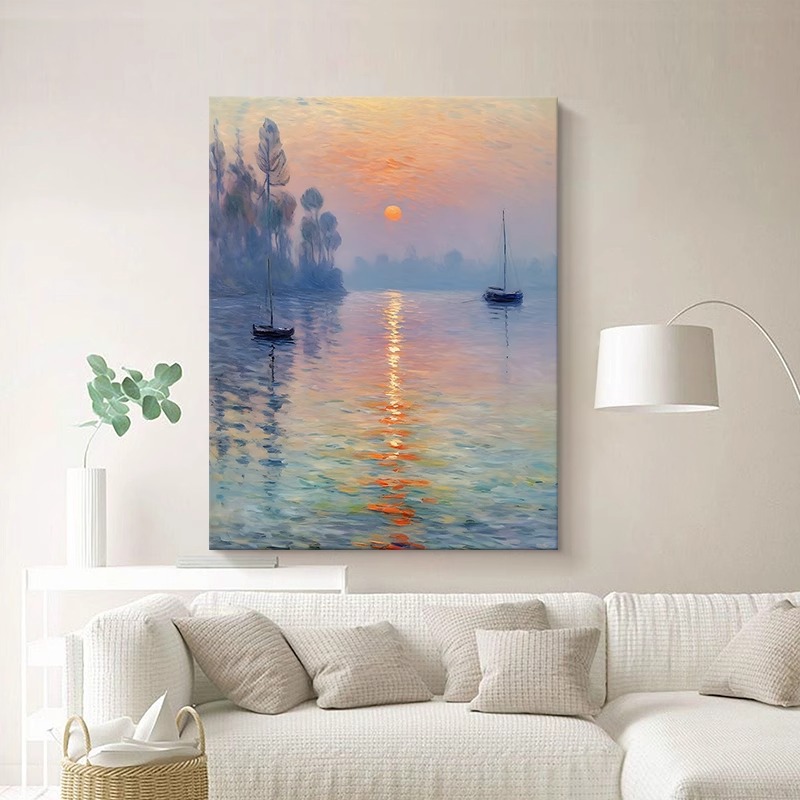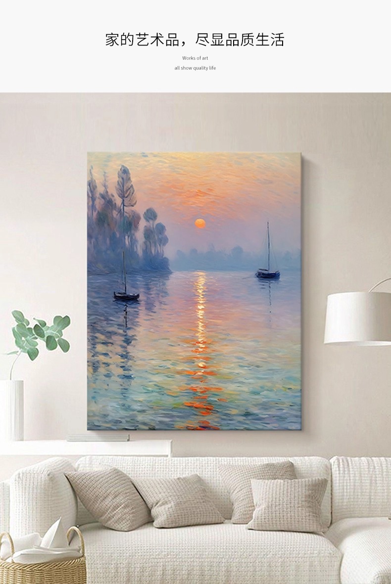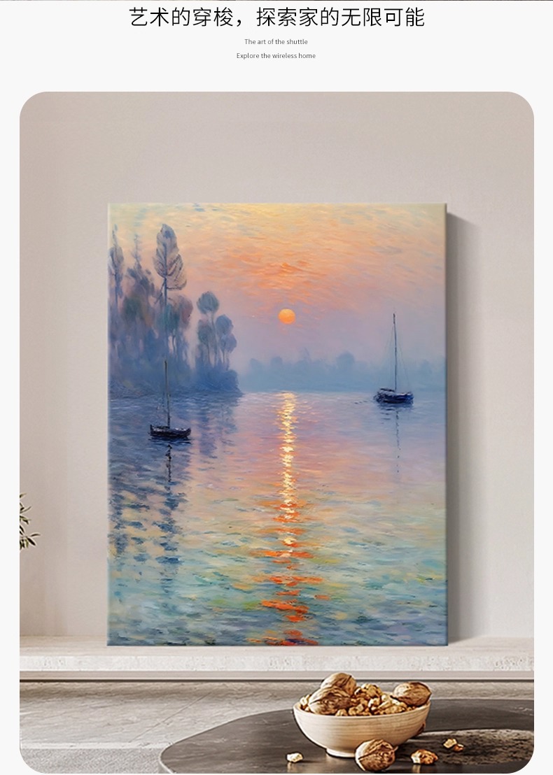 旭日东升莫奈日出玄关装饰画客厅世界名画高清喷绘酒店挂画无框画
