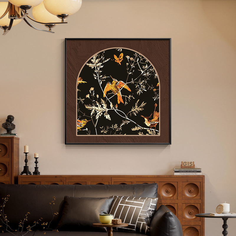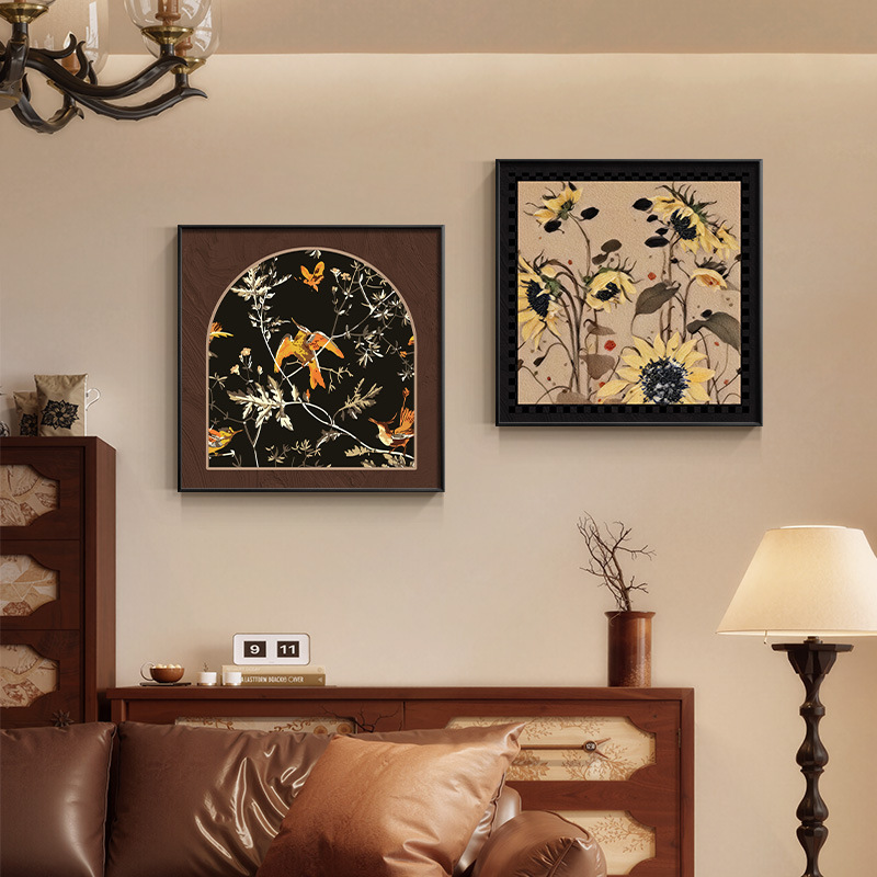 新款装饰画挂画客厅高级感铝合金壁画复古大气组合喷绘中古风
