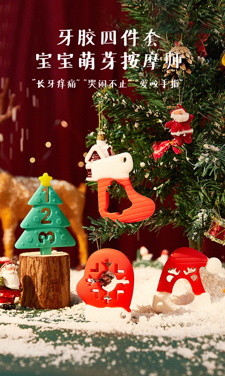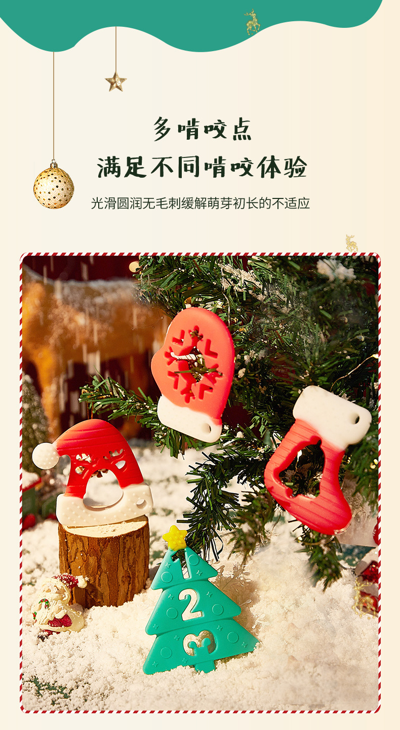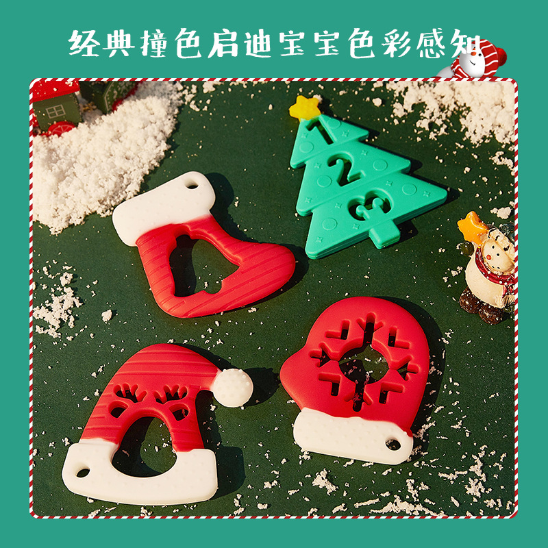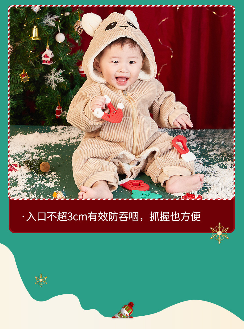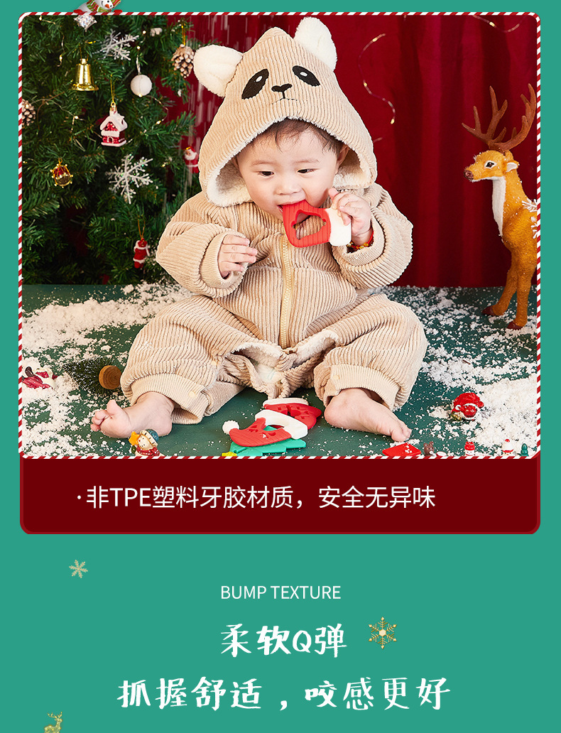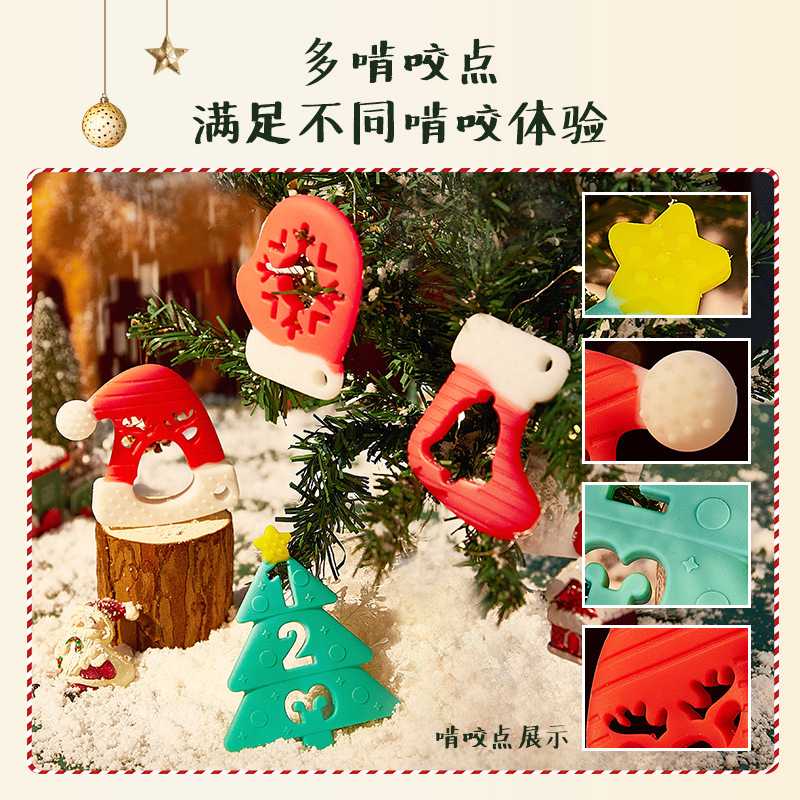 婴儿咬咬乐磨牙安抚牙胶宝宝防吃手磨牙棒立体圣诞牙胶