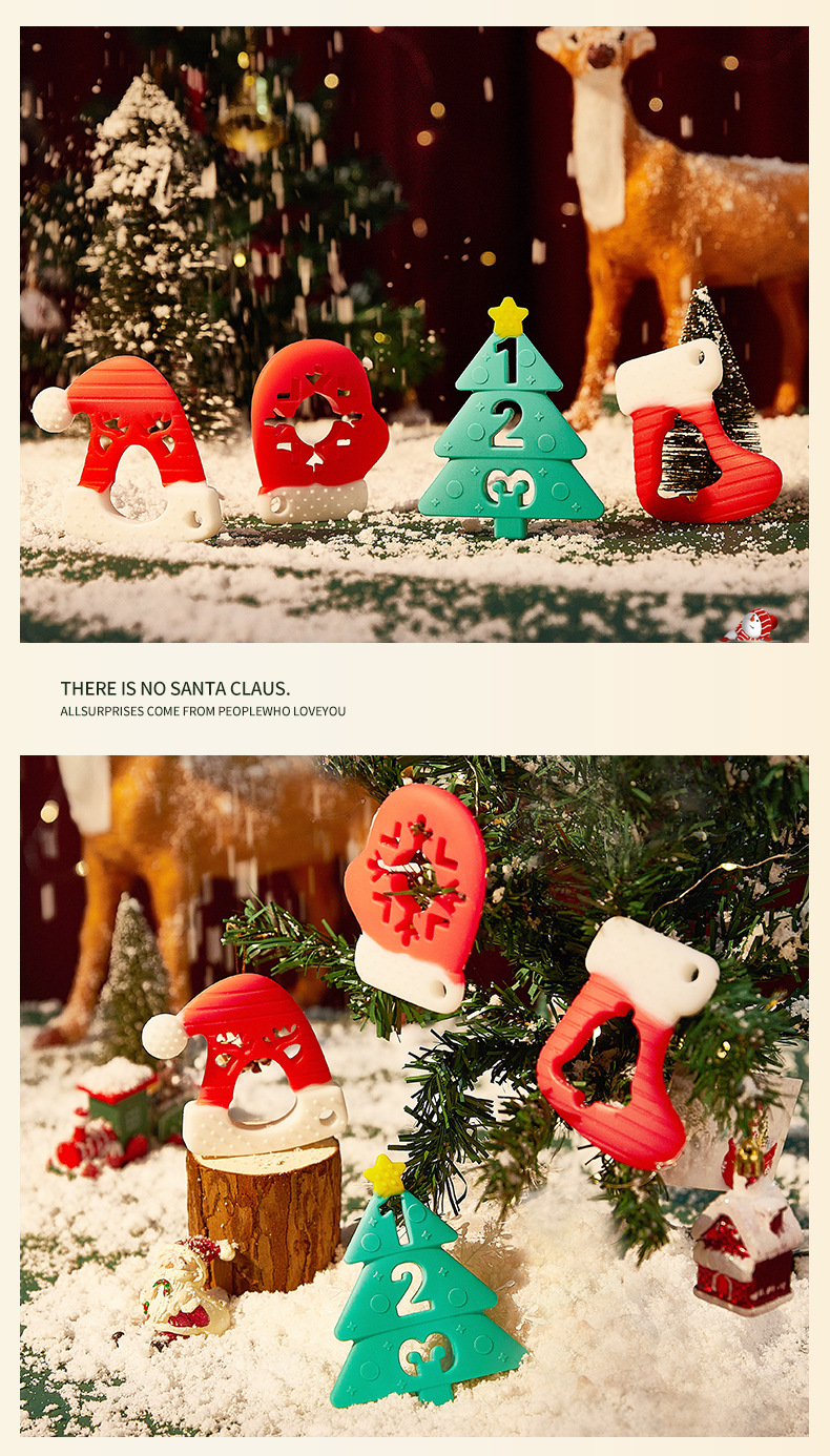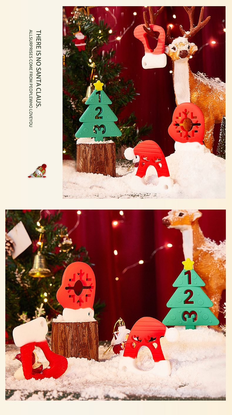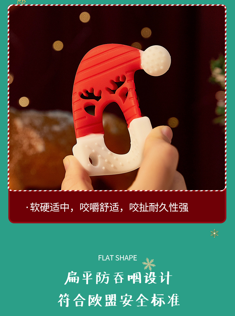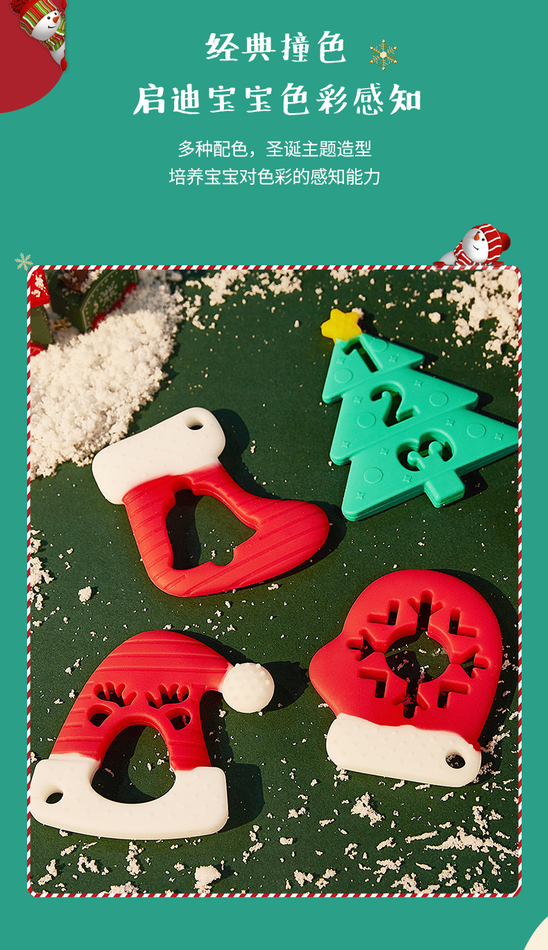婴儿咬咬乐磨牙安抚牙胶宝宝防吃手磨牙棒立体圣诞牙胶