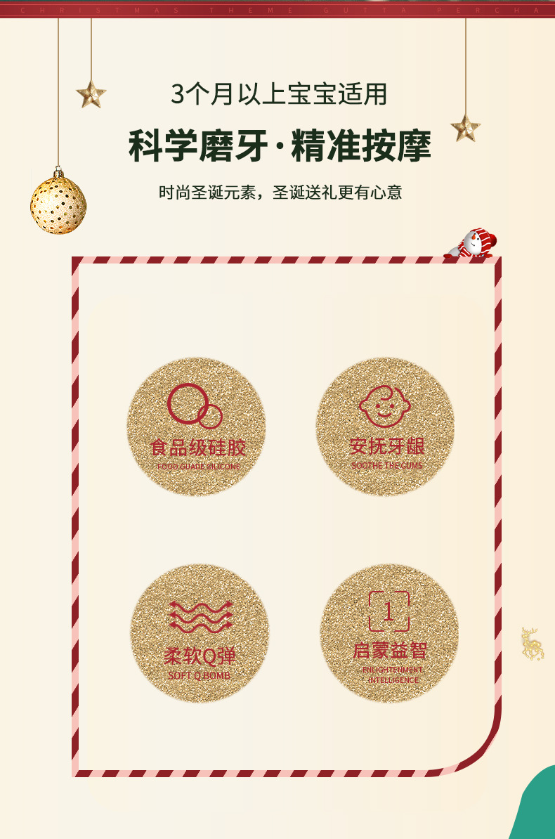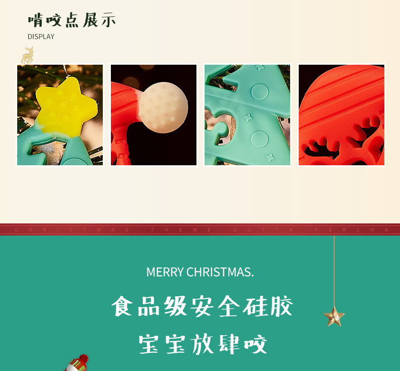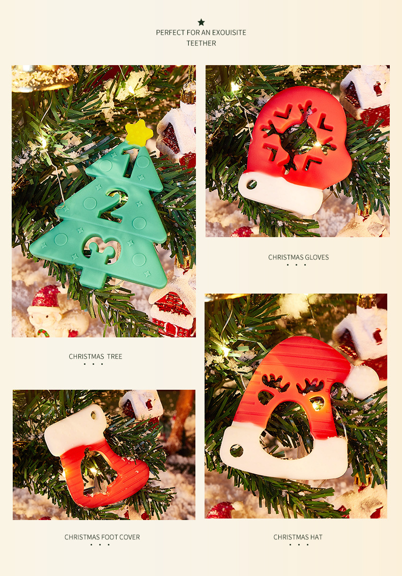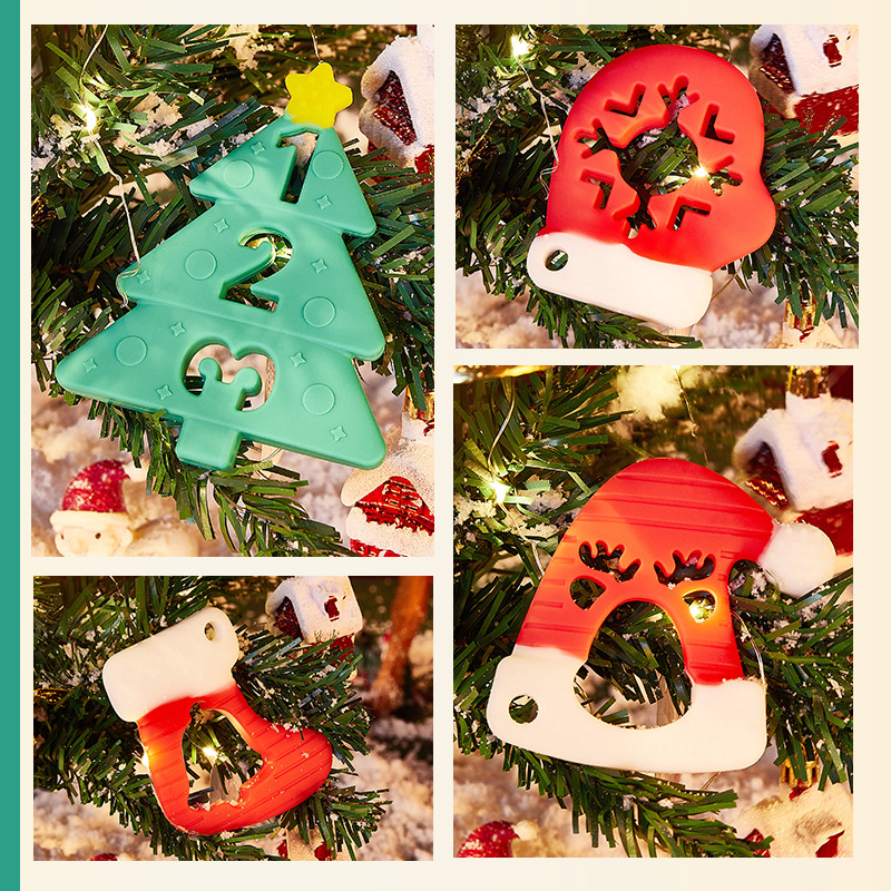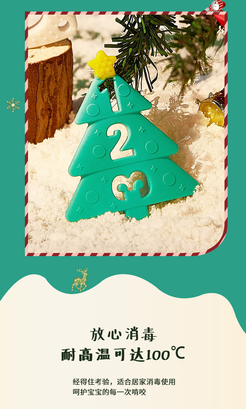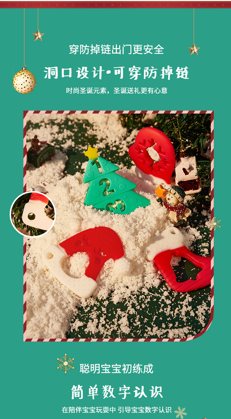 婴儿咬咬乐磨牙安抚牙胶宝宝防吃手磨牙棒立体圣诞牙胶