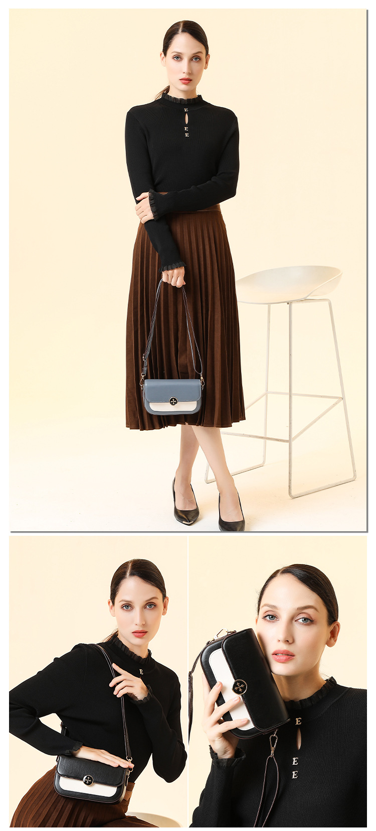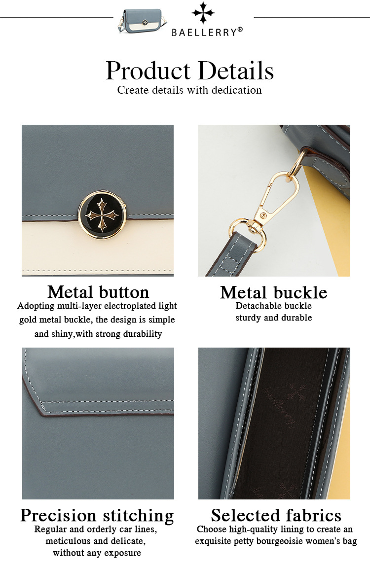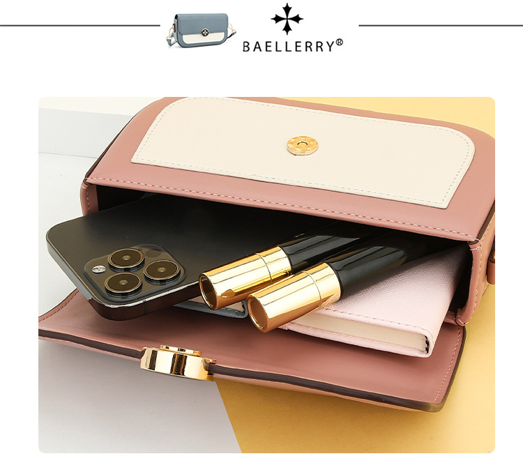 无LOGO女士手机包撞色平纹235单肩斜挎包小方包女包