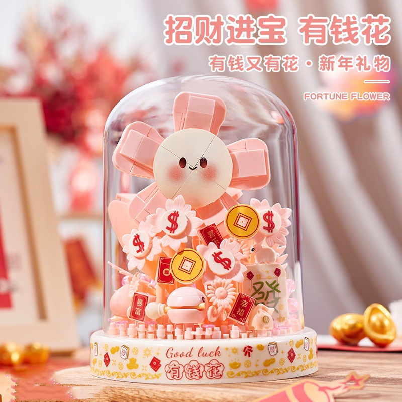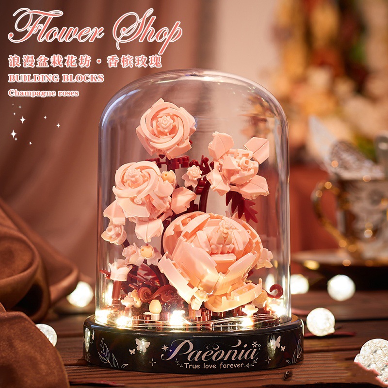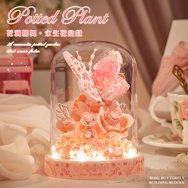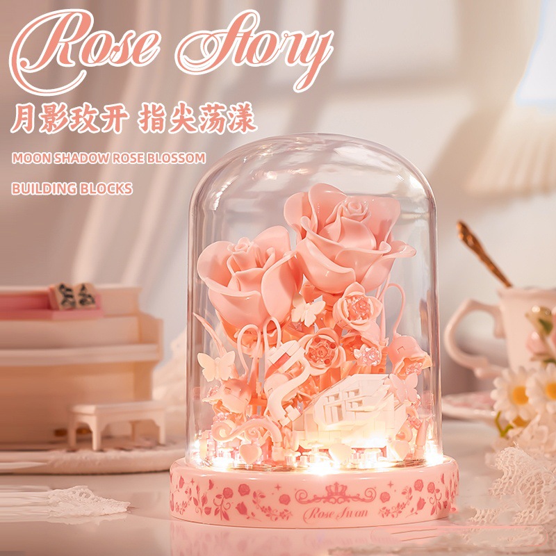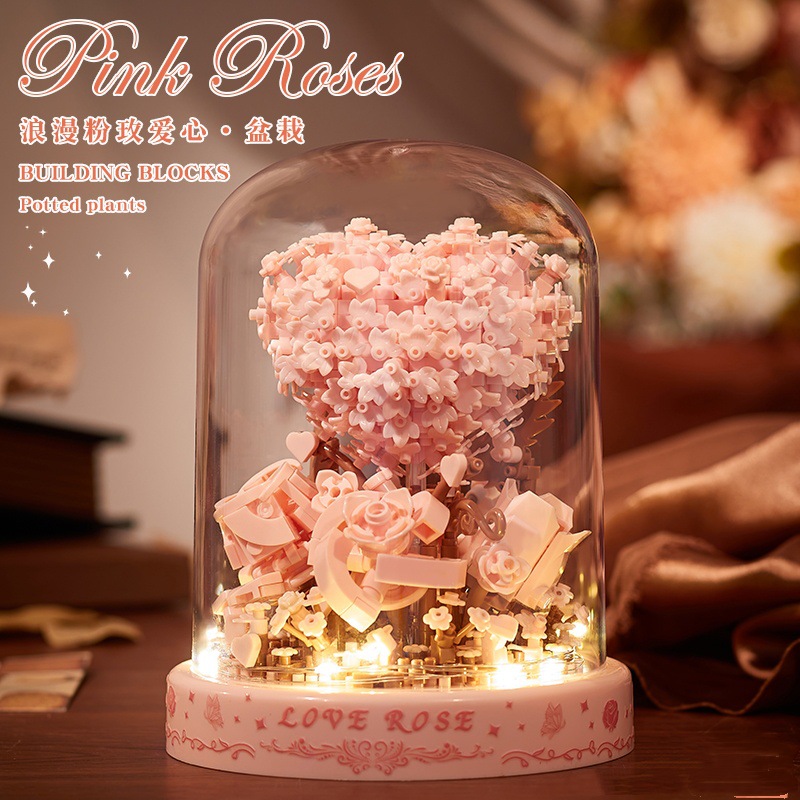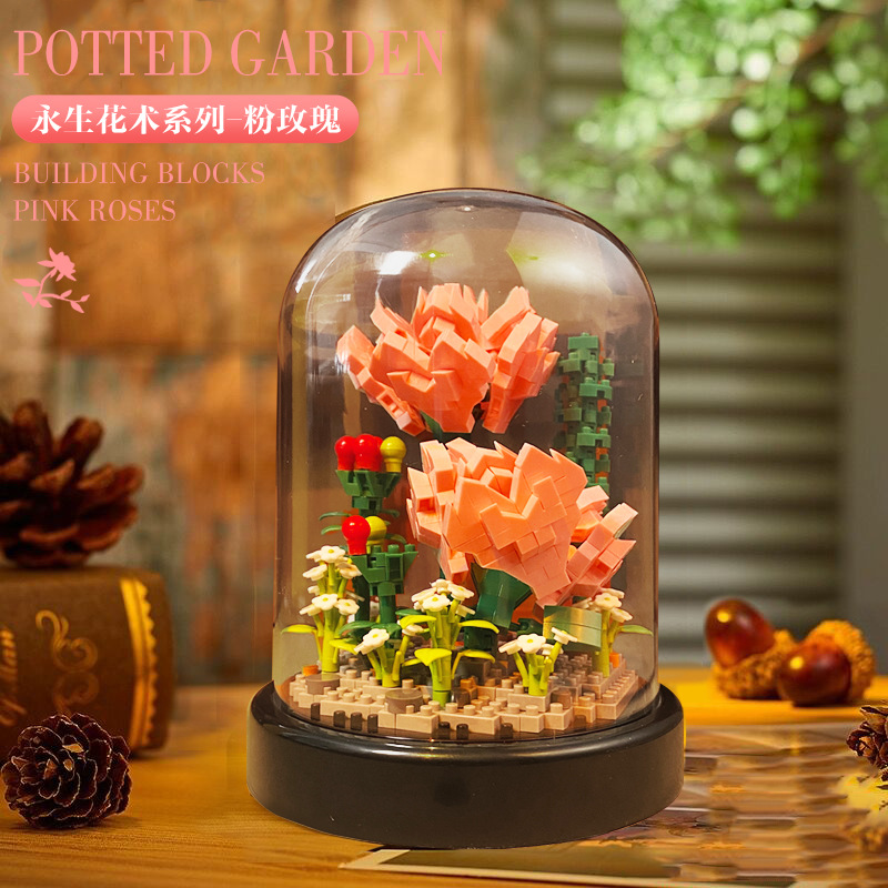 永生积木花束拼装玩具玫瑰花盆栽高颜值手工diy送女生情人节礼物