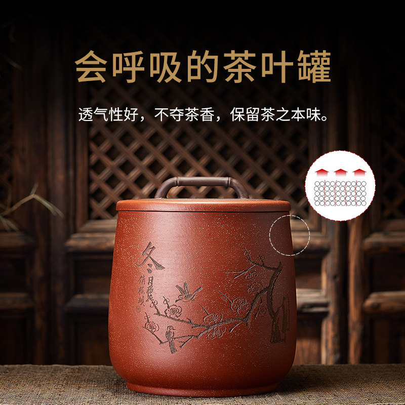 紫砂茶叶罐家用大号储存茶缸普洱茶饼收纳醒茶罐陶瓷密封罐子