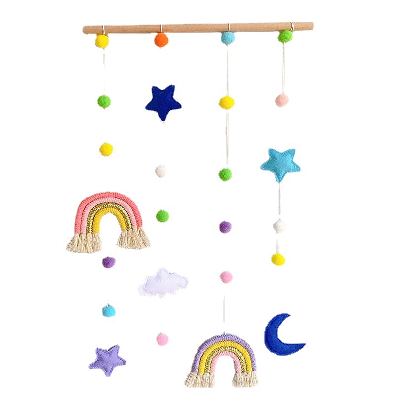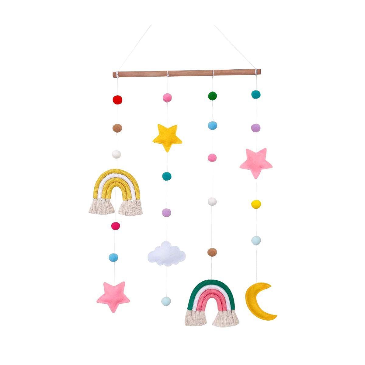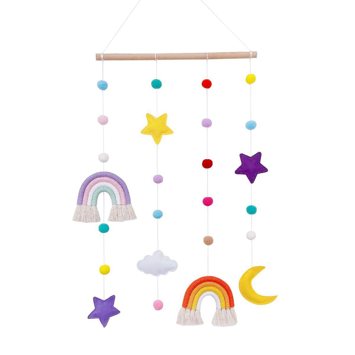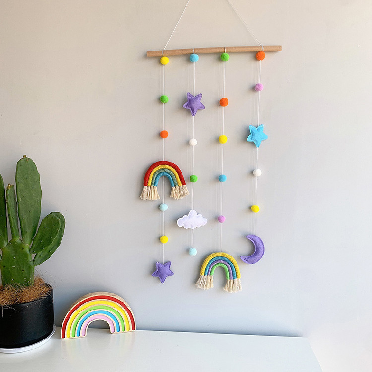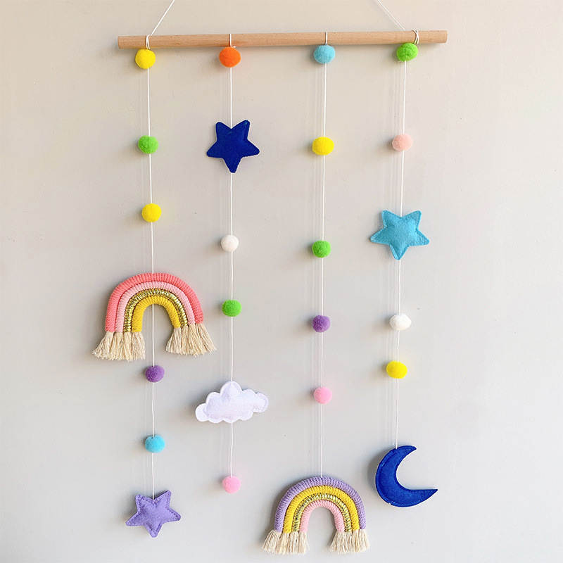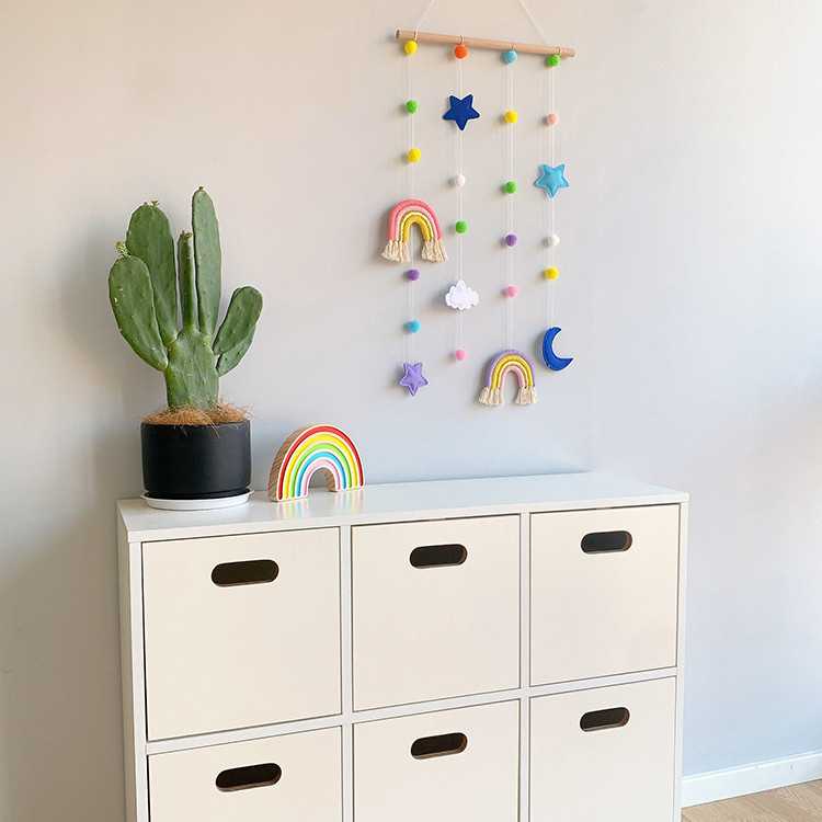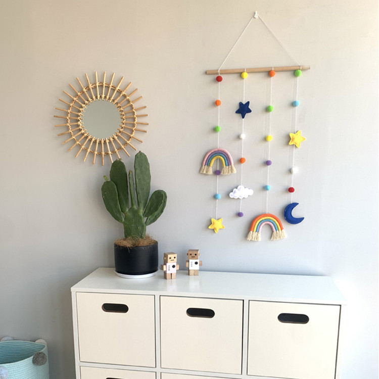墙壁装饰立体彩虹星星毛球挂件照片发夹收纳儿童房幼儿园挂饰壁挂