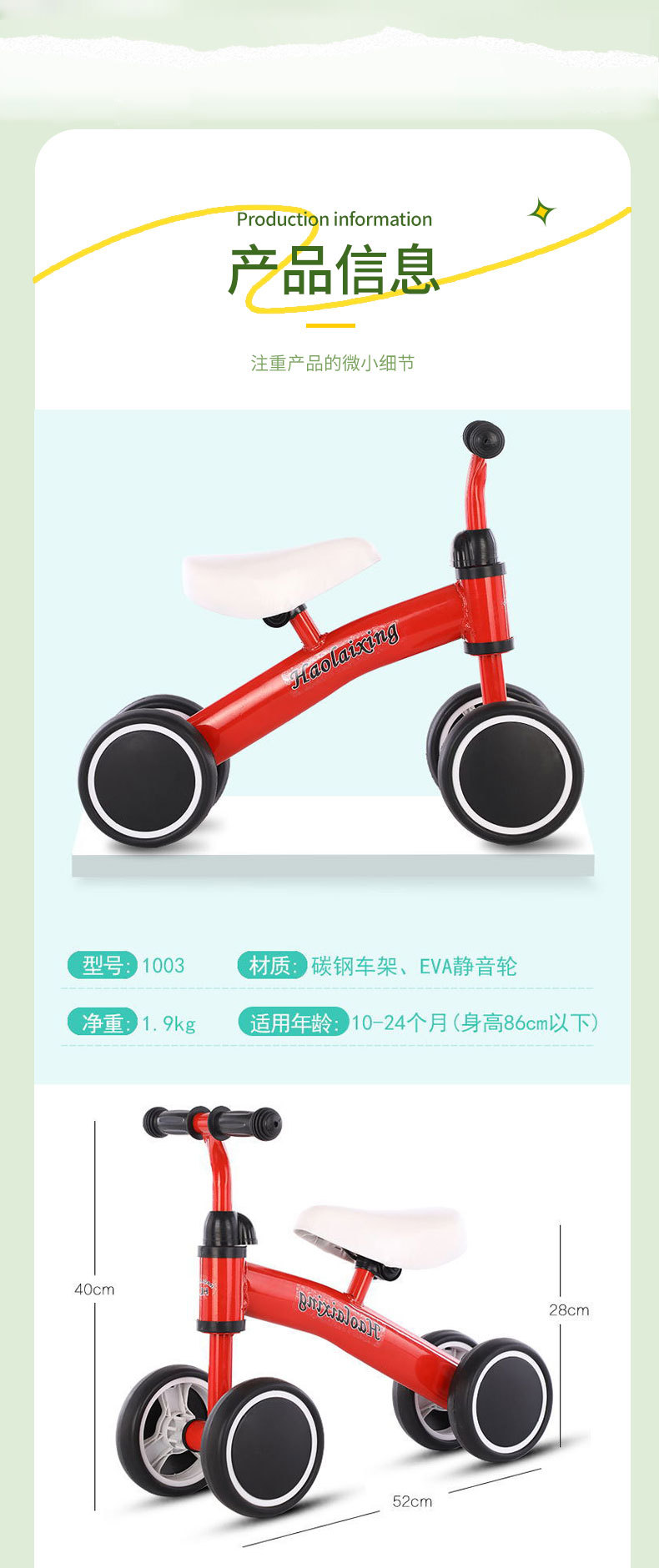 儿童平衡车1—3岁宝宝无脚踏溜溜车新款婴幼儿入门四轮学步滑行车
