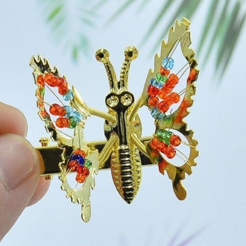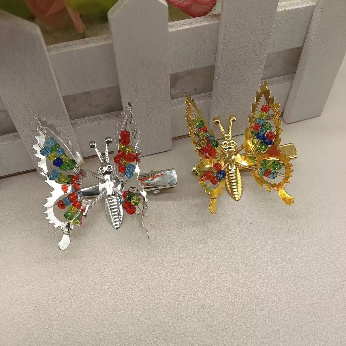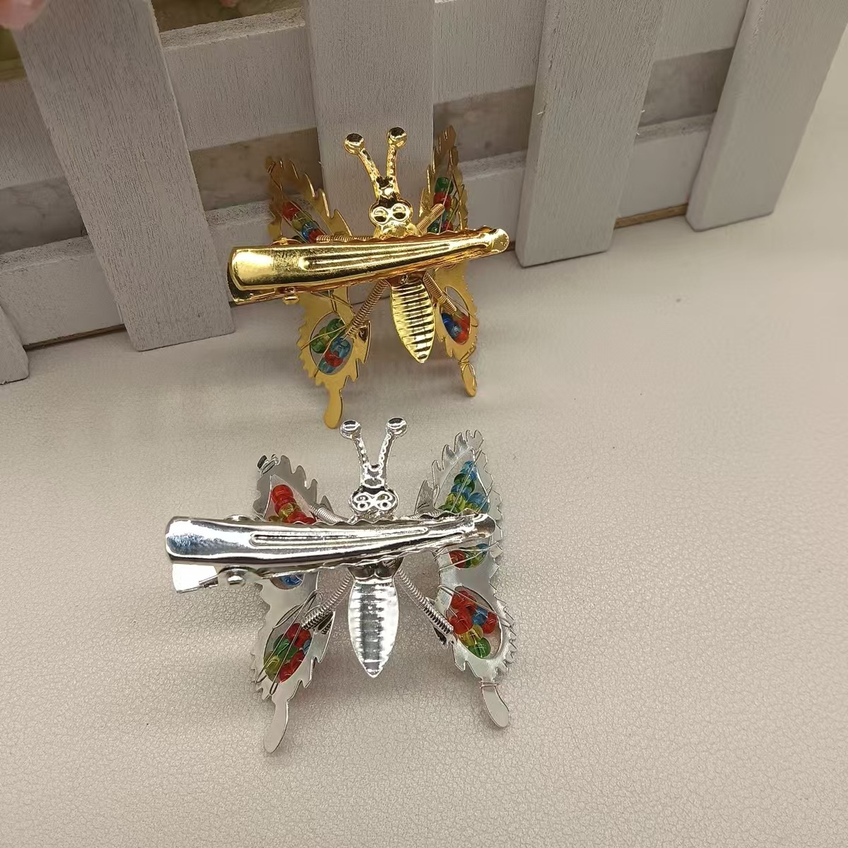 彩珠蝴蝶发夹【金色】