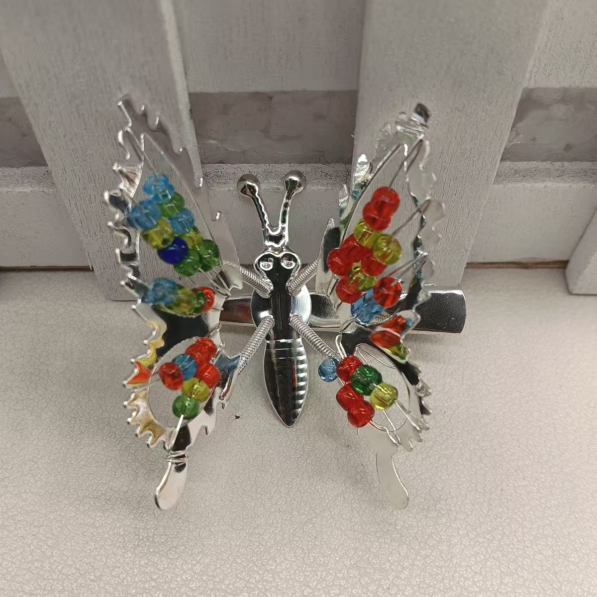 彩珠蝴蝶发夹【银色】