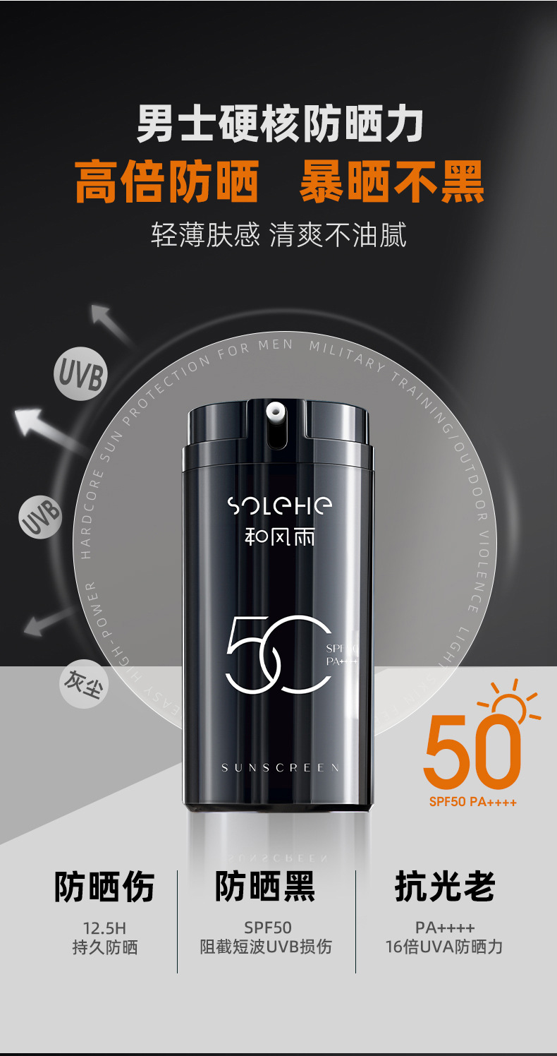 男士防晒霜100gSPF50PA++++户外高原隔离乳霜清爽保湿防嗮