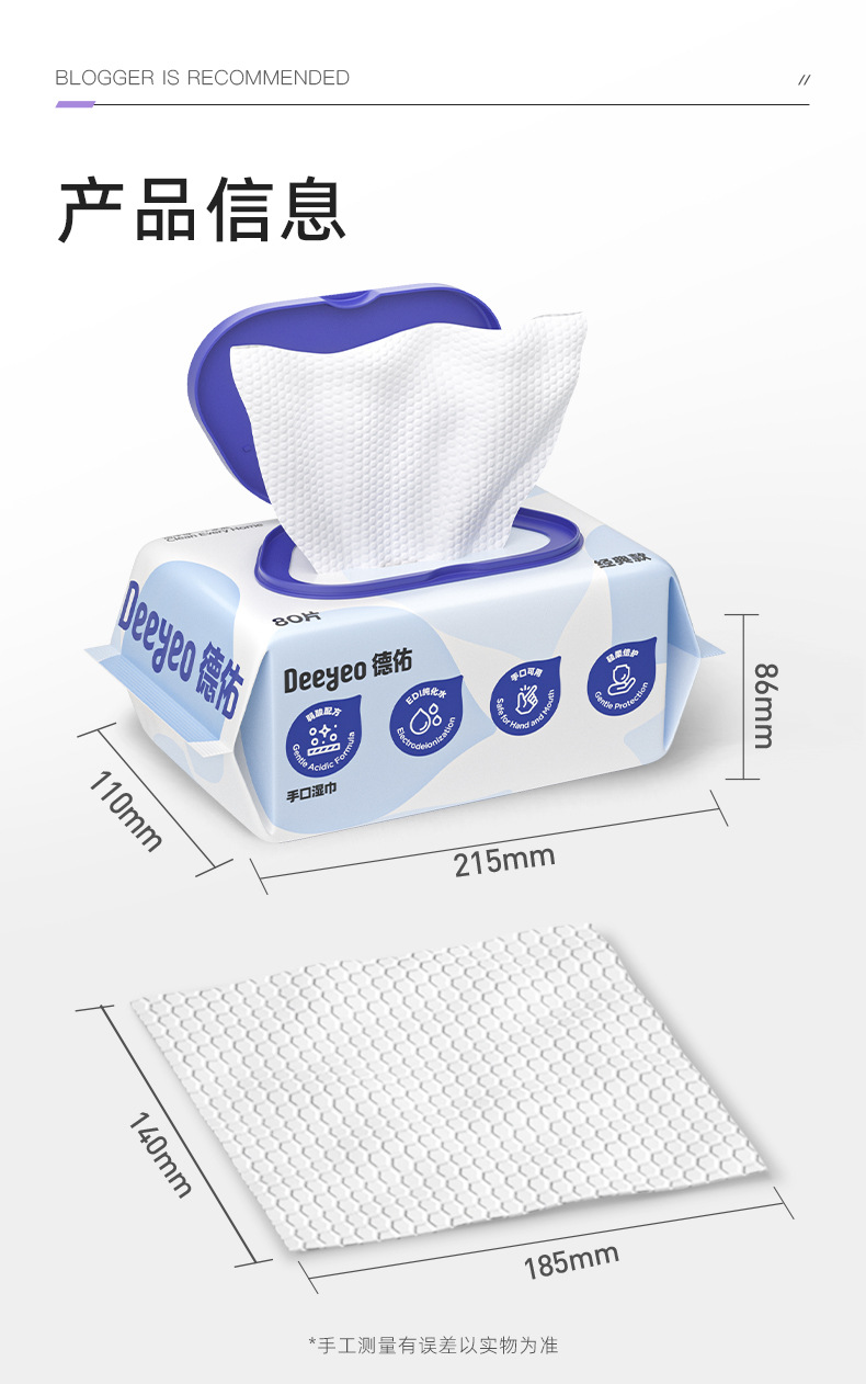 德佑婴幼儿儿童手口湿巾80抽湿纸巾五包家庭装婴儿湿巾