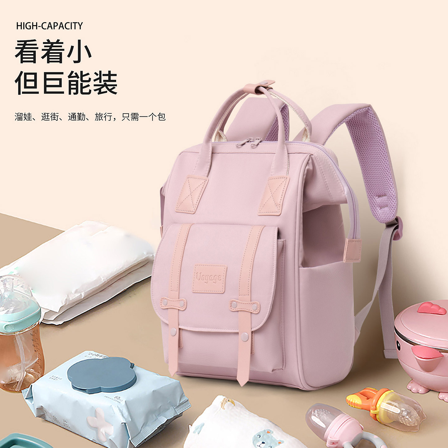 妈咪包ins时尚大容量多功能宝妈外出旅行收纳母婴双肩背包
