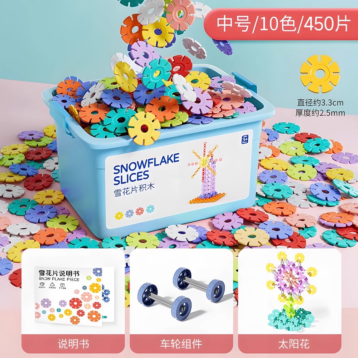 【中号450片】十色加厚雪花片+车轮组一对+说明书