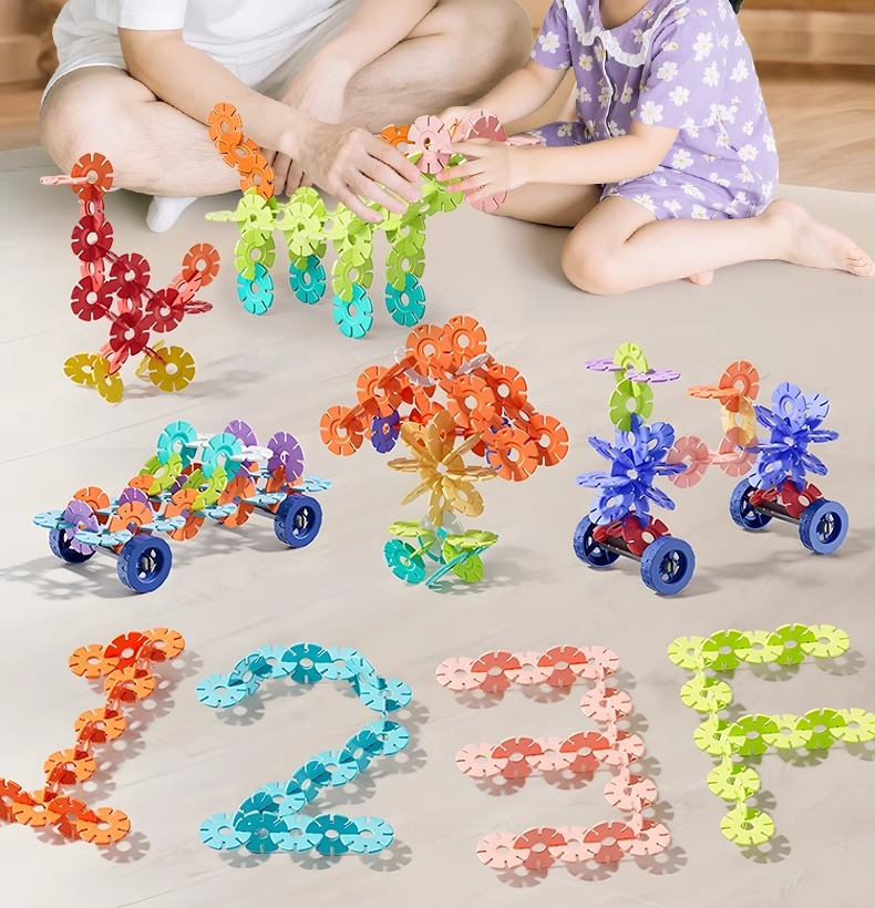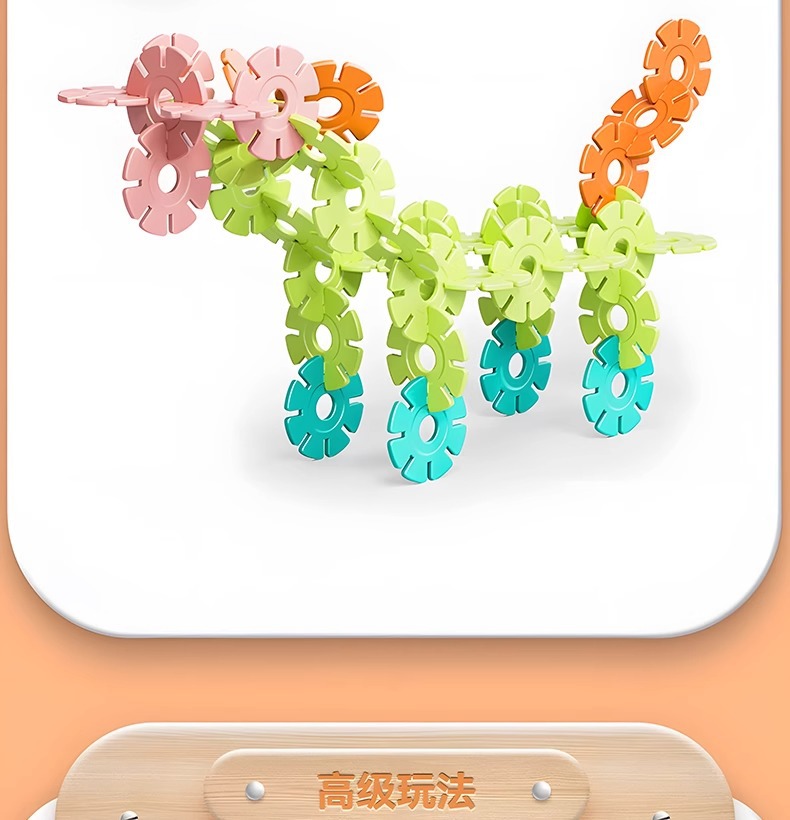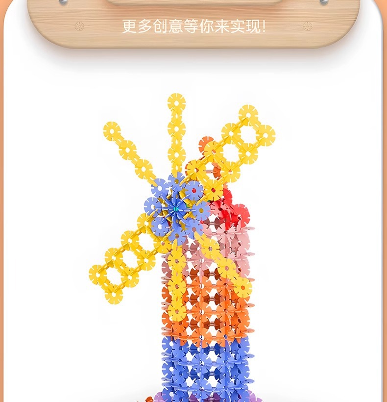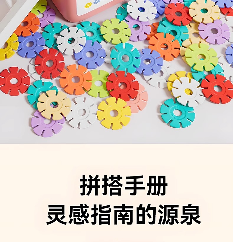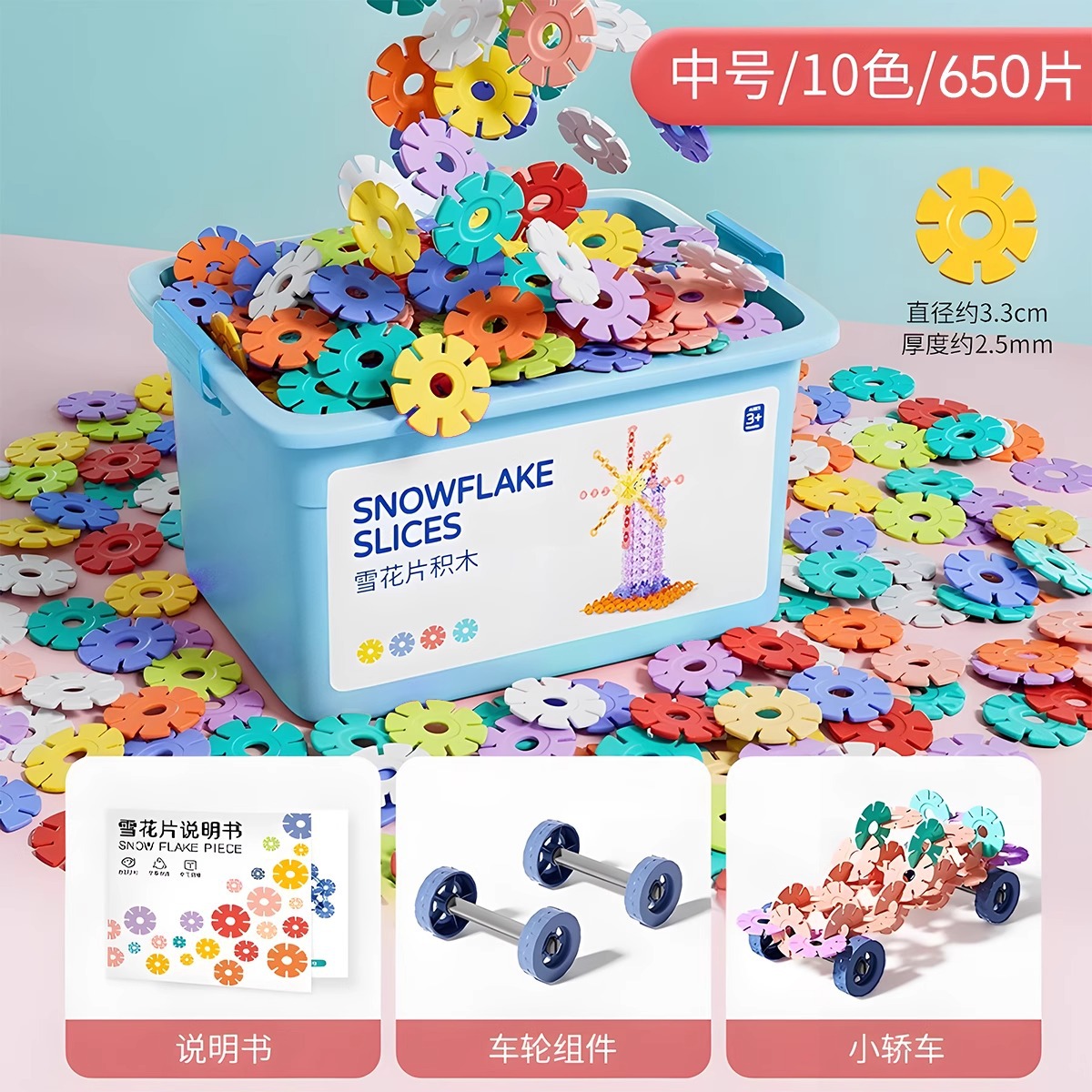 【中号650片】十色加厚雪花片+车轮组一对+说明书