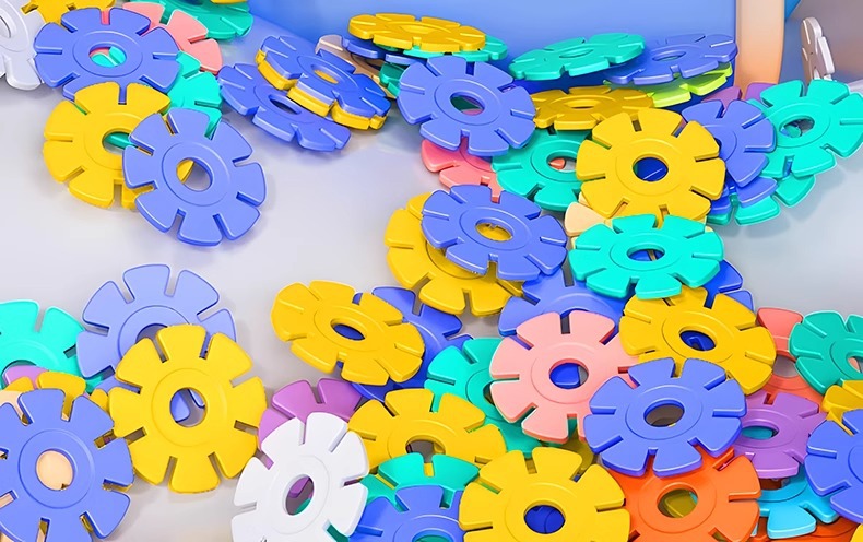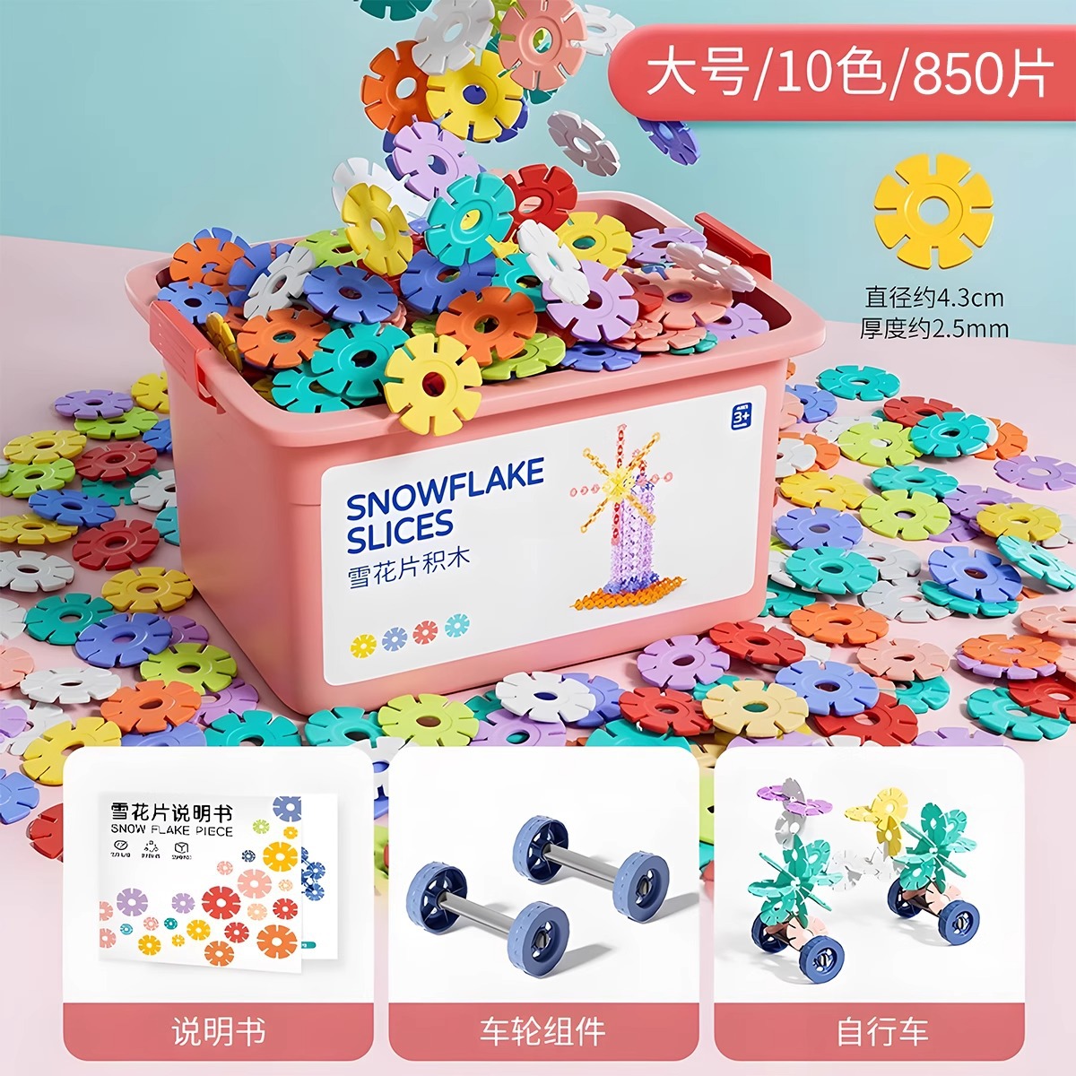 【大号850片】十色加厚雪花片+车轮组一对+说明书
