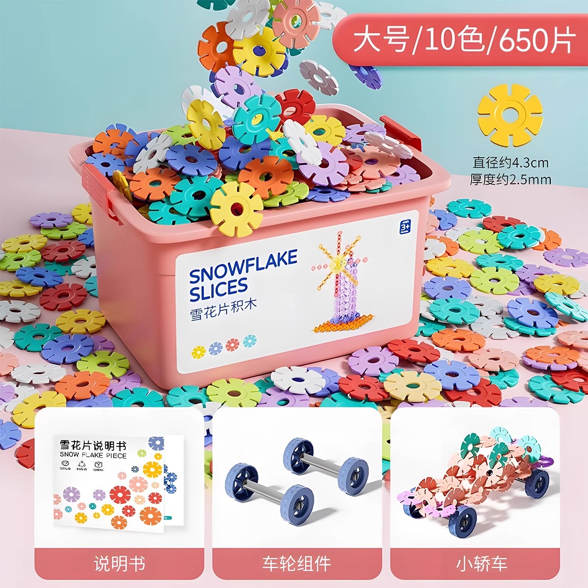 【大号650片】十色加厚雪花片+车轮组一对+说明书