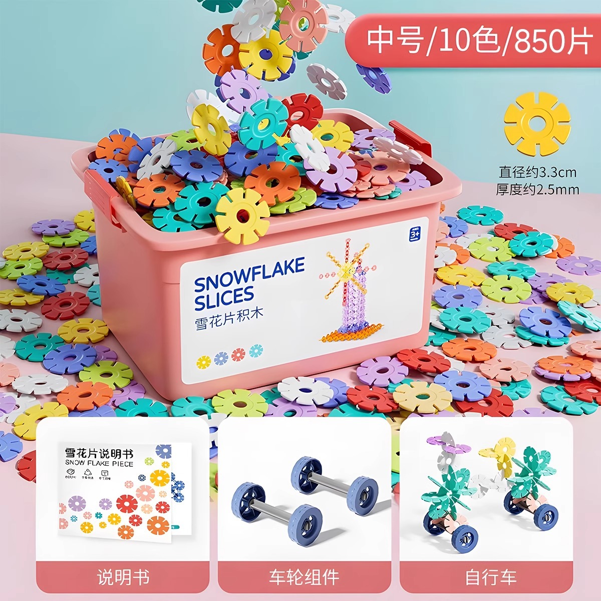 【中号850片】十色加厚雪花片+车轮组一对+说明书