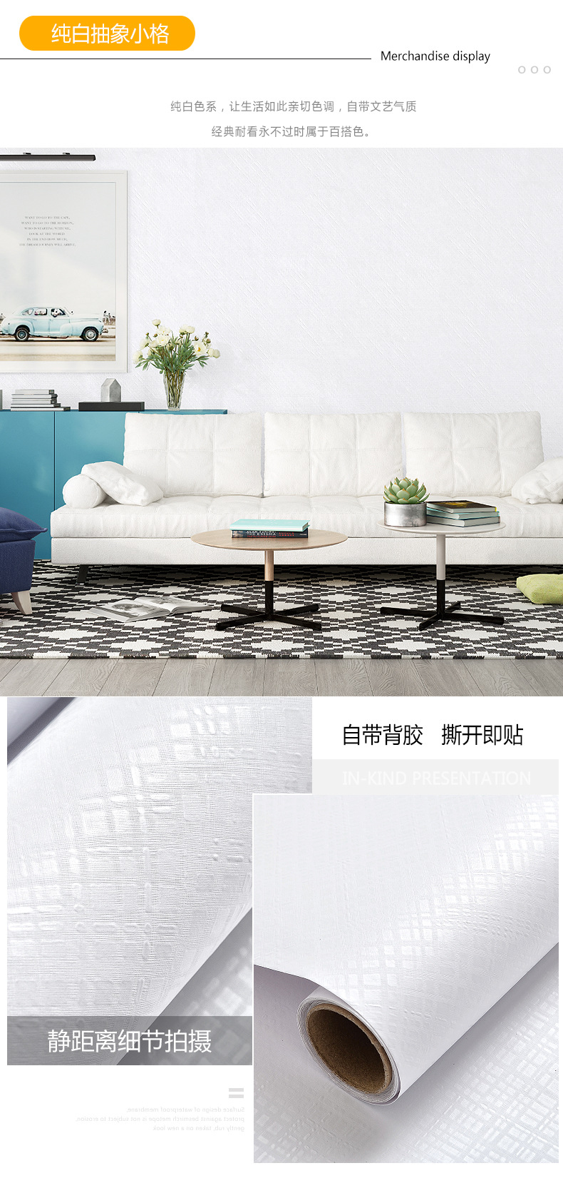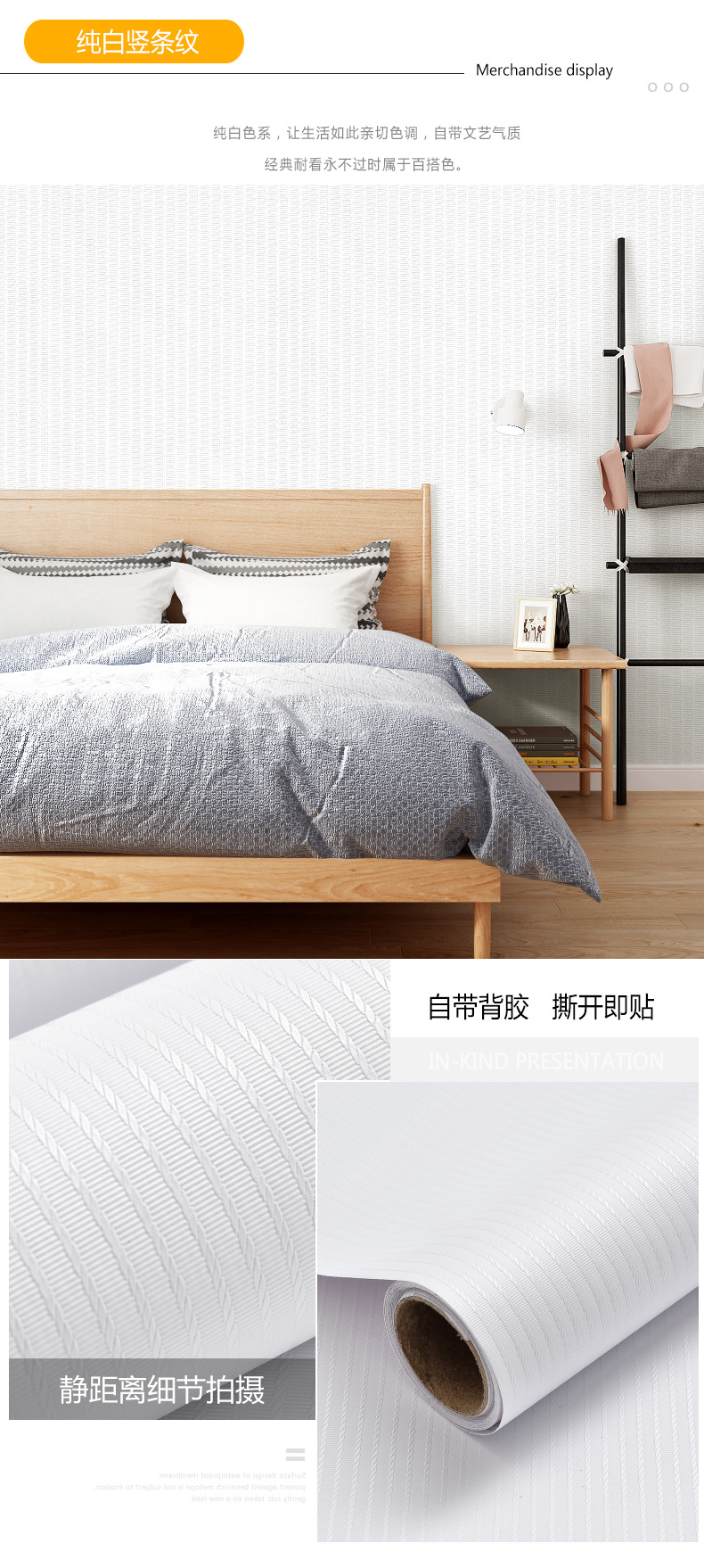 墙纸自粘pvc防水防潮背景墙卧室白色壁纸天花板贴纸墙壁客厅墙面