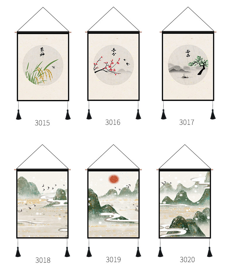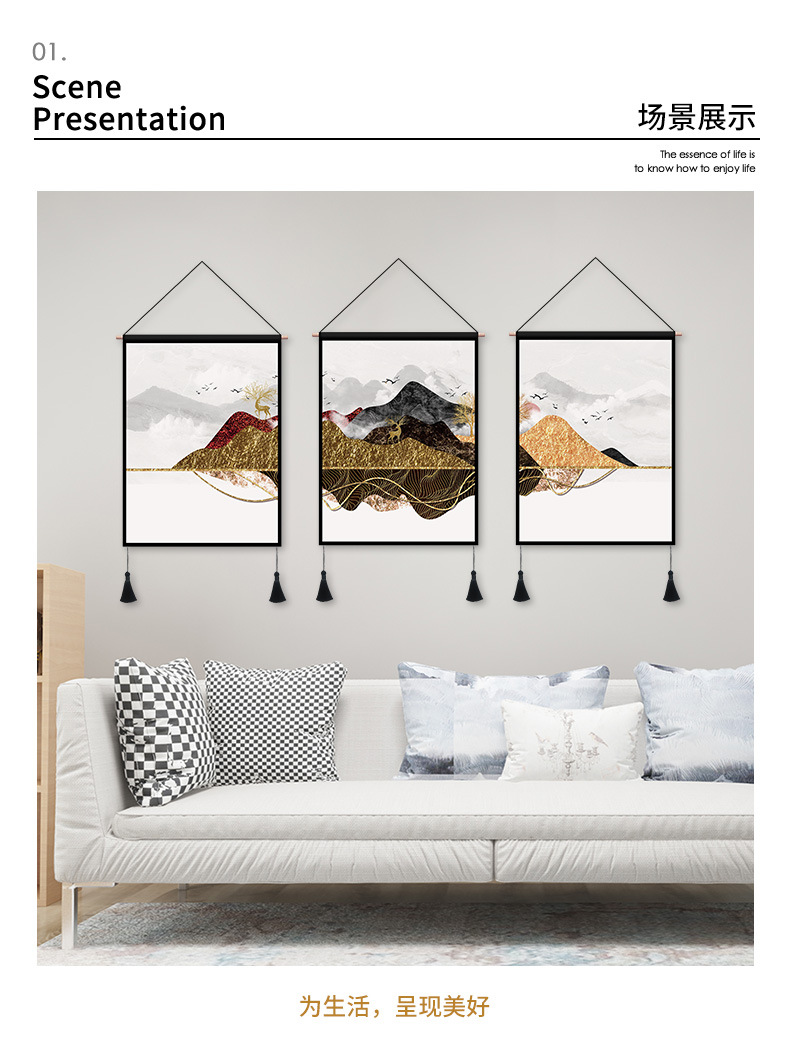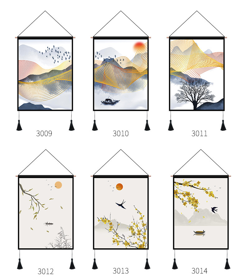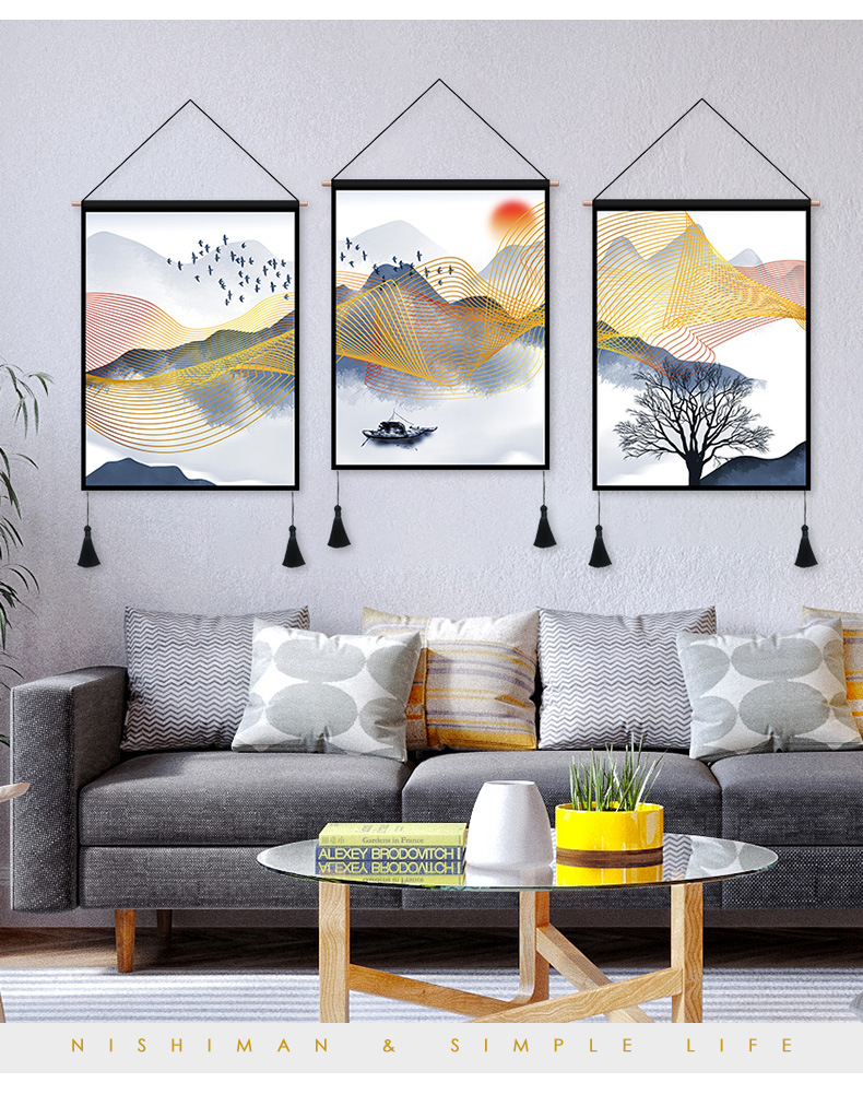 ins风新中式墙面装饰画中式餐厅通用风景挂画背景画客厅卧室壁画