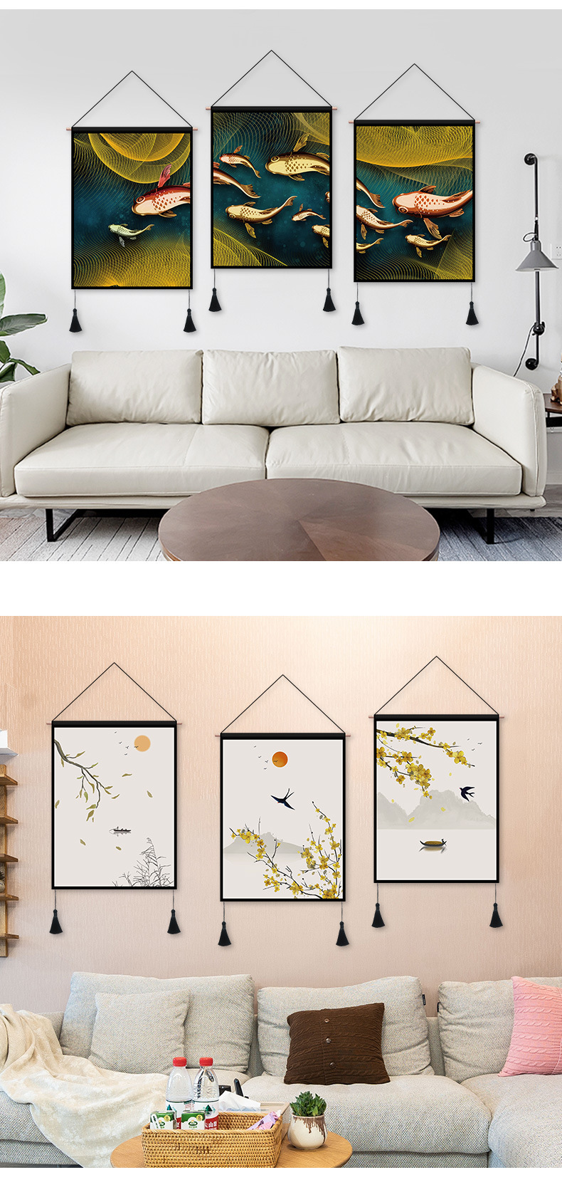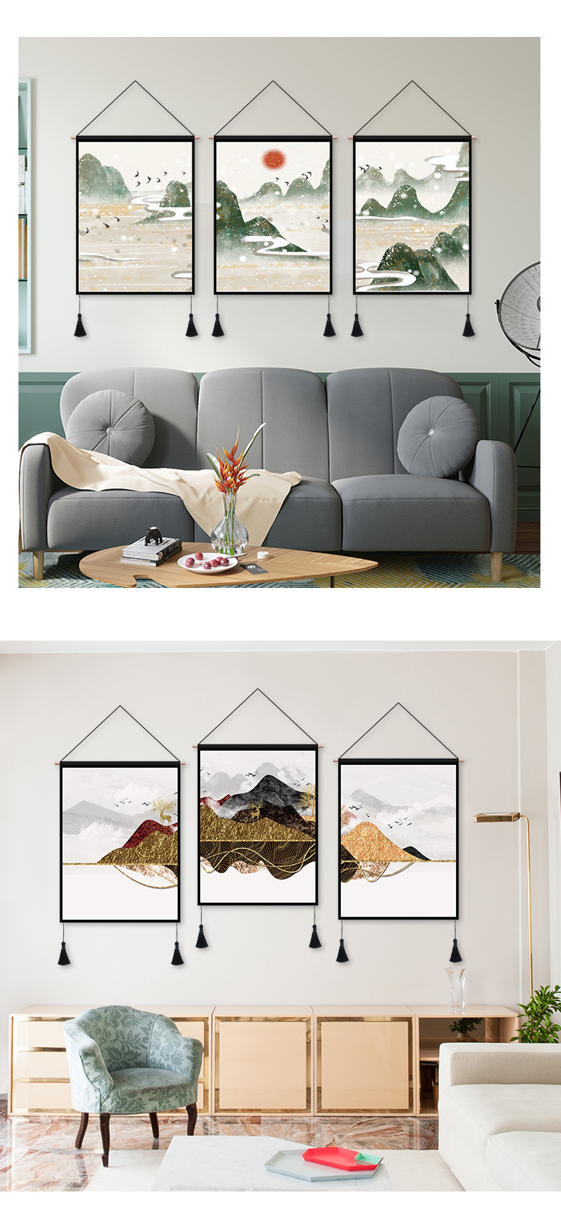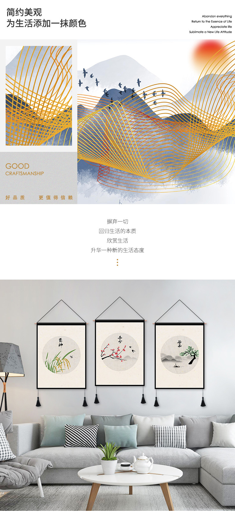 ins风新中式墙面装饰画中式餐厅通用风景挂画背景画客厅卧室壁画