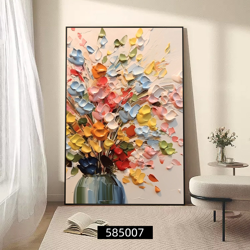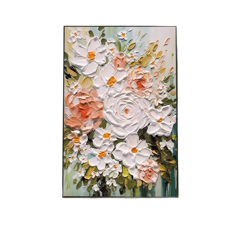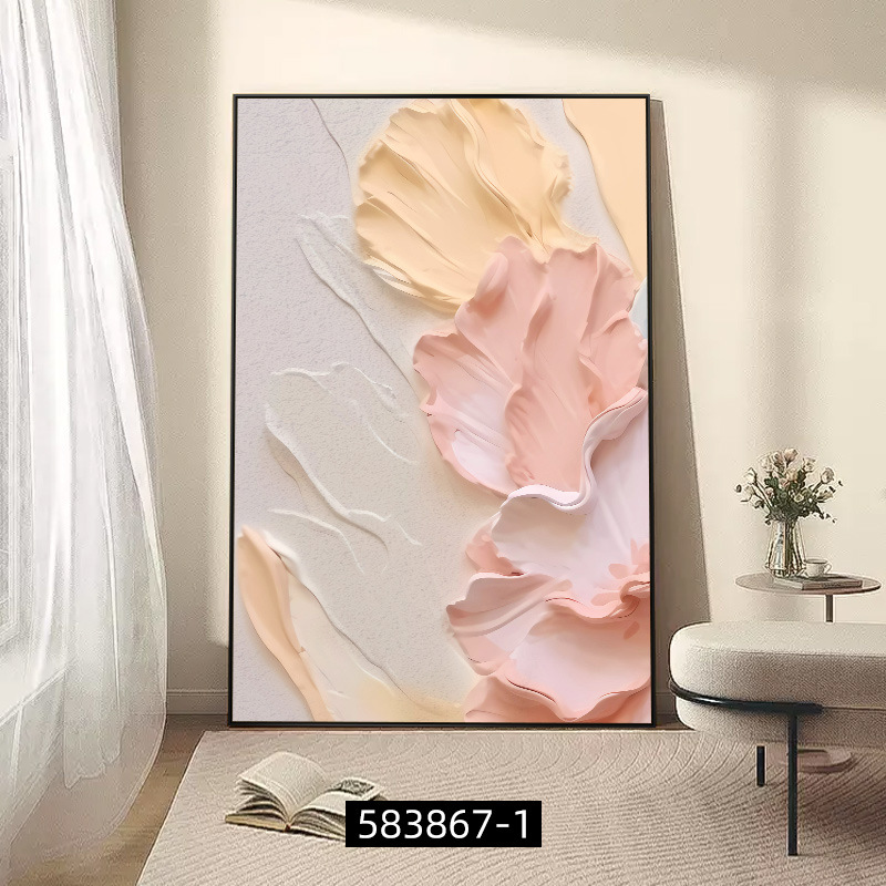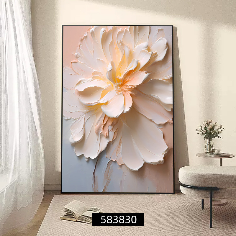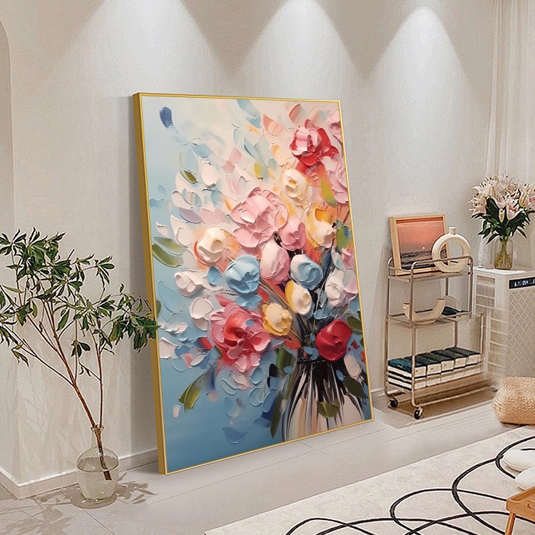 客厅装饰画肌理感挂画花卉沙发后背景画高级感落地画大气玄关壁画