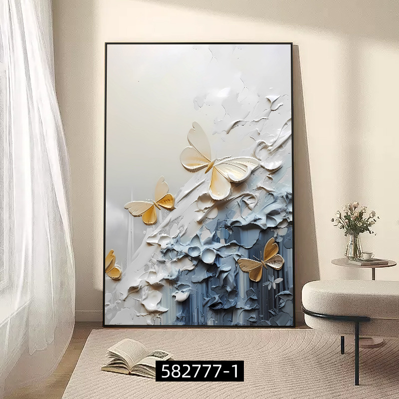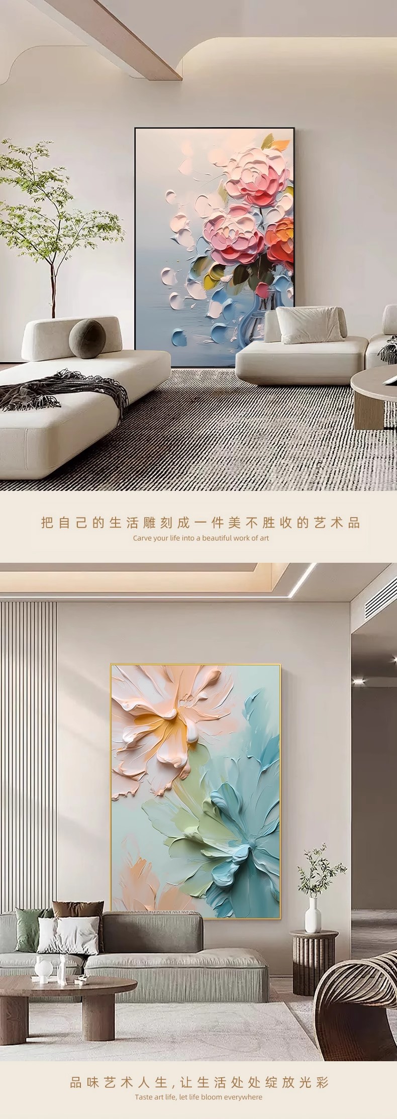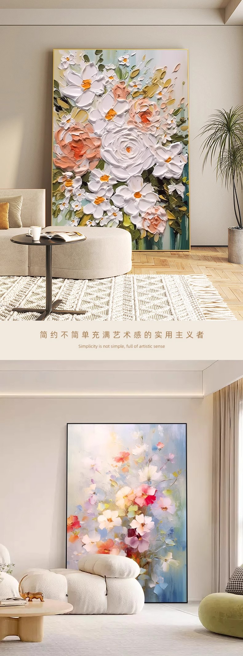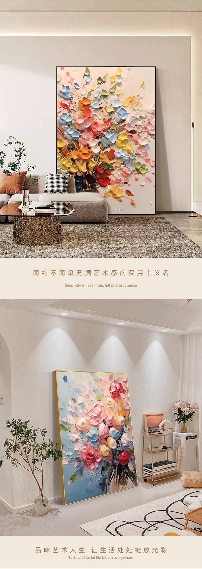 客厅装饰画肌理感挂画花卉沙发后背景画高级感落地画大气玄关壁画