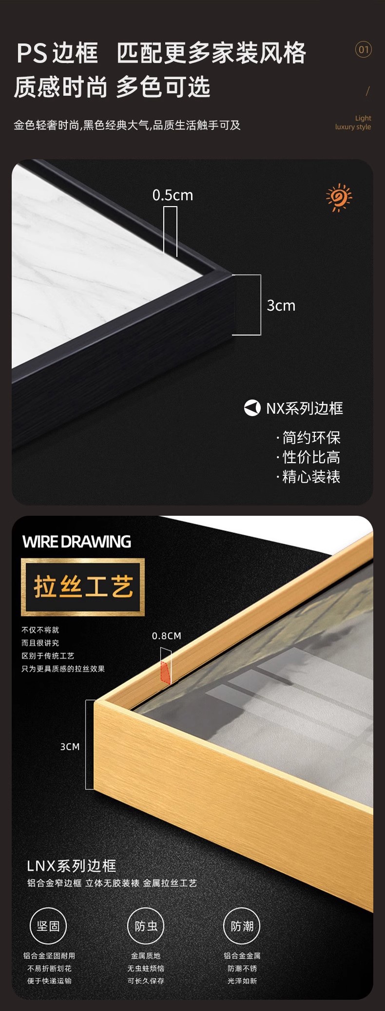 - 80*120+高清水晶画面【铝合金边框+高清艺术微喷+水晶保护层】+金框