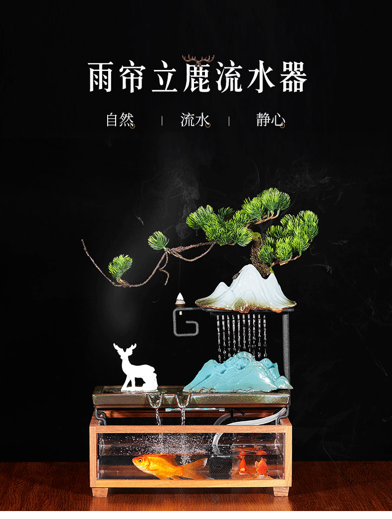 雾化加湿水景造雾器假山鱼缸景观鱼盆水雾起雾流水器养鱼盆景摆件