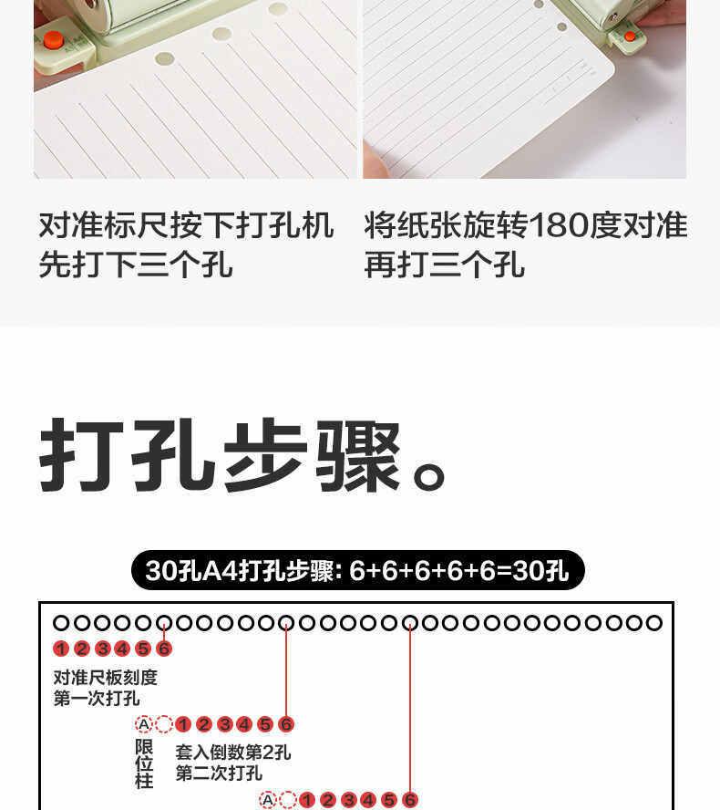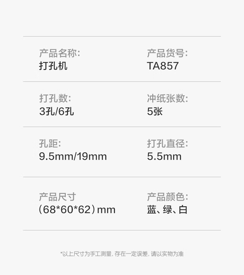得力ta857打孔器六孔多孔打孔机活页本a4纸张打孔手动打洞机装订