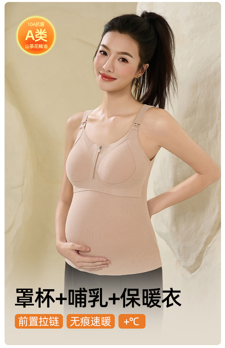 山茶花孕哺期产后喂奶孕妇秋冬保暖背心内衣打底加厚哺乳文胸上衣