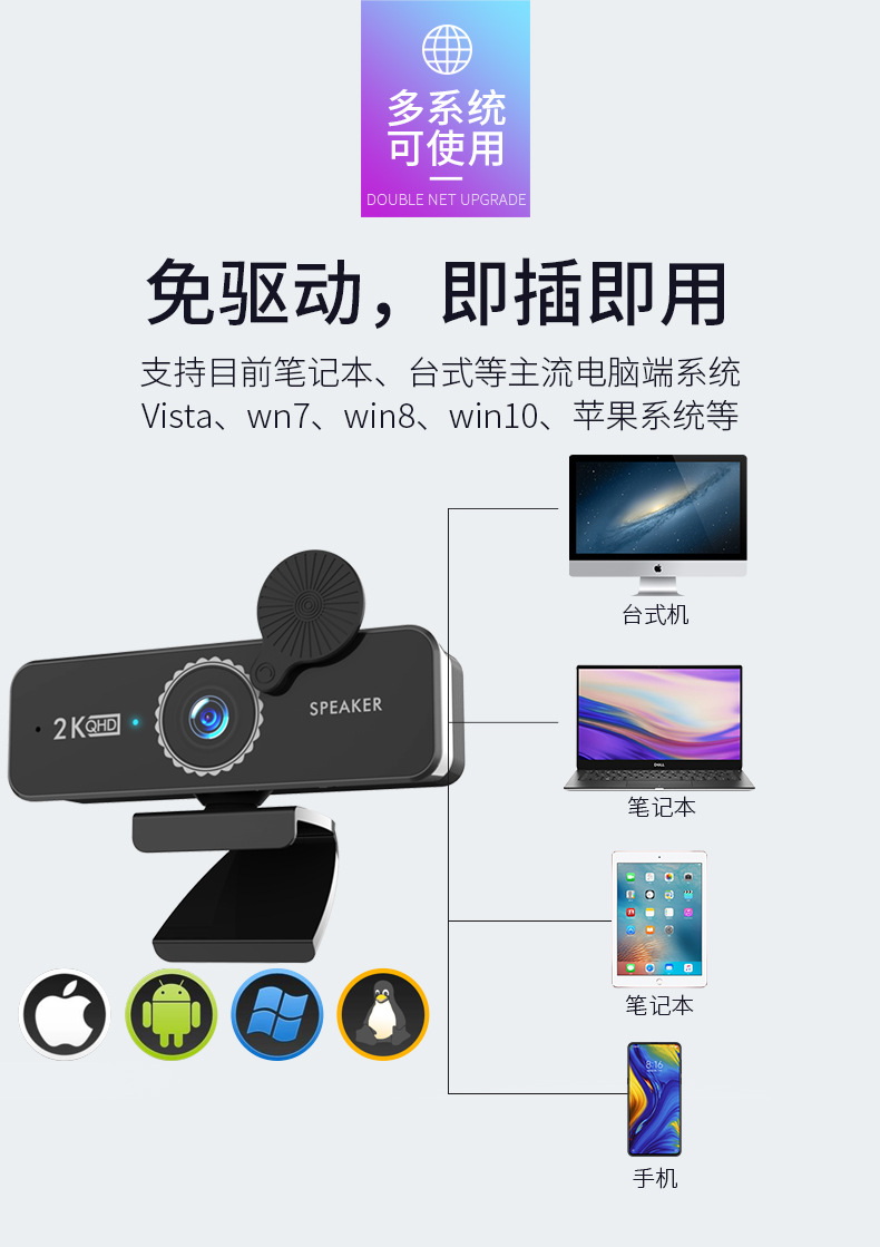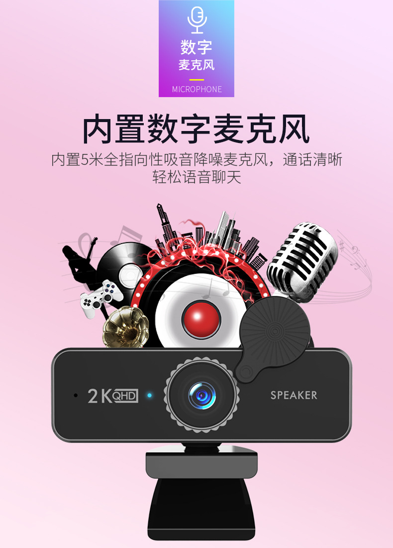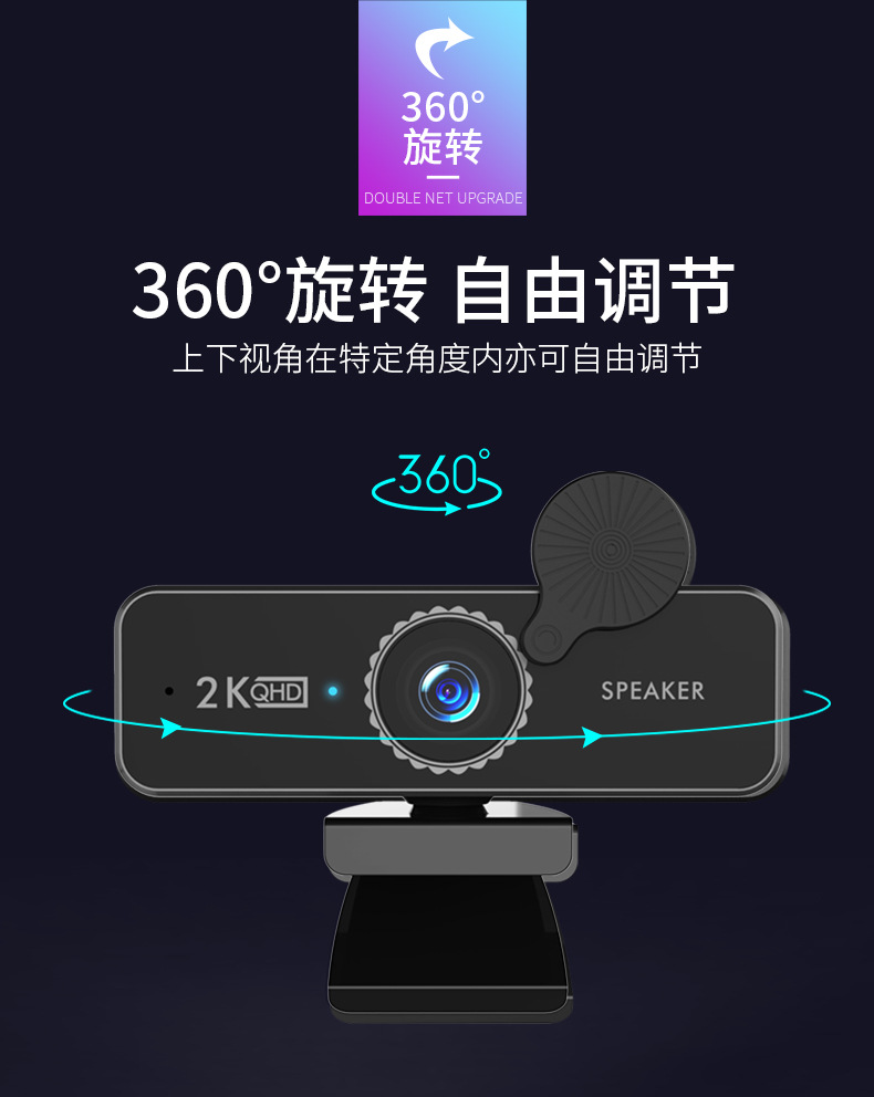 4K新款USB上课webcam1080p网络高清直播电脑摄像头内置喇叭扬声器