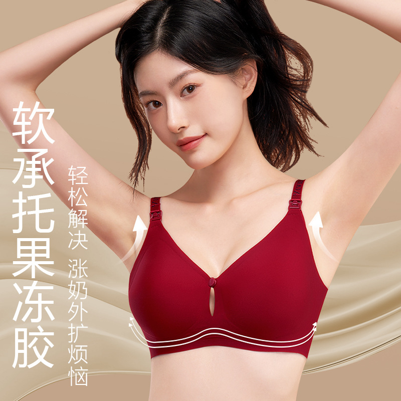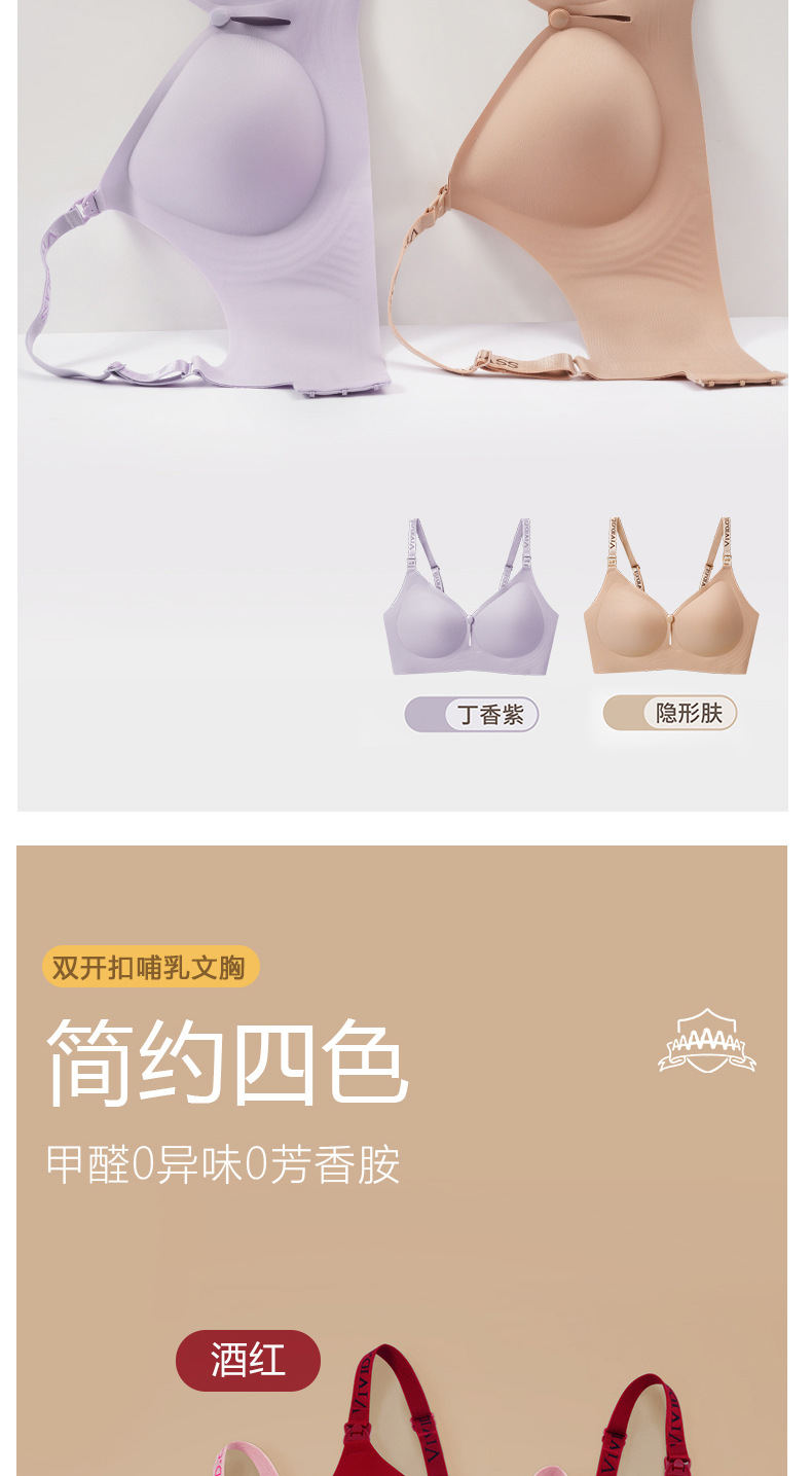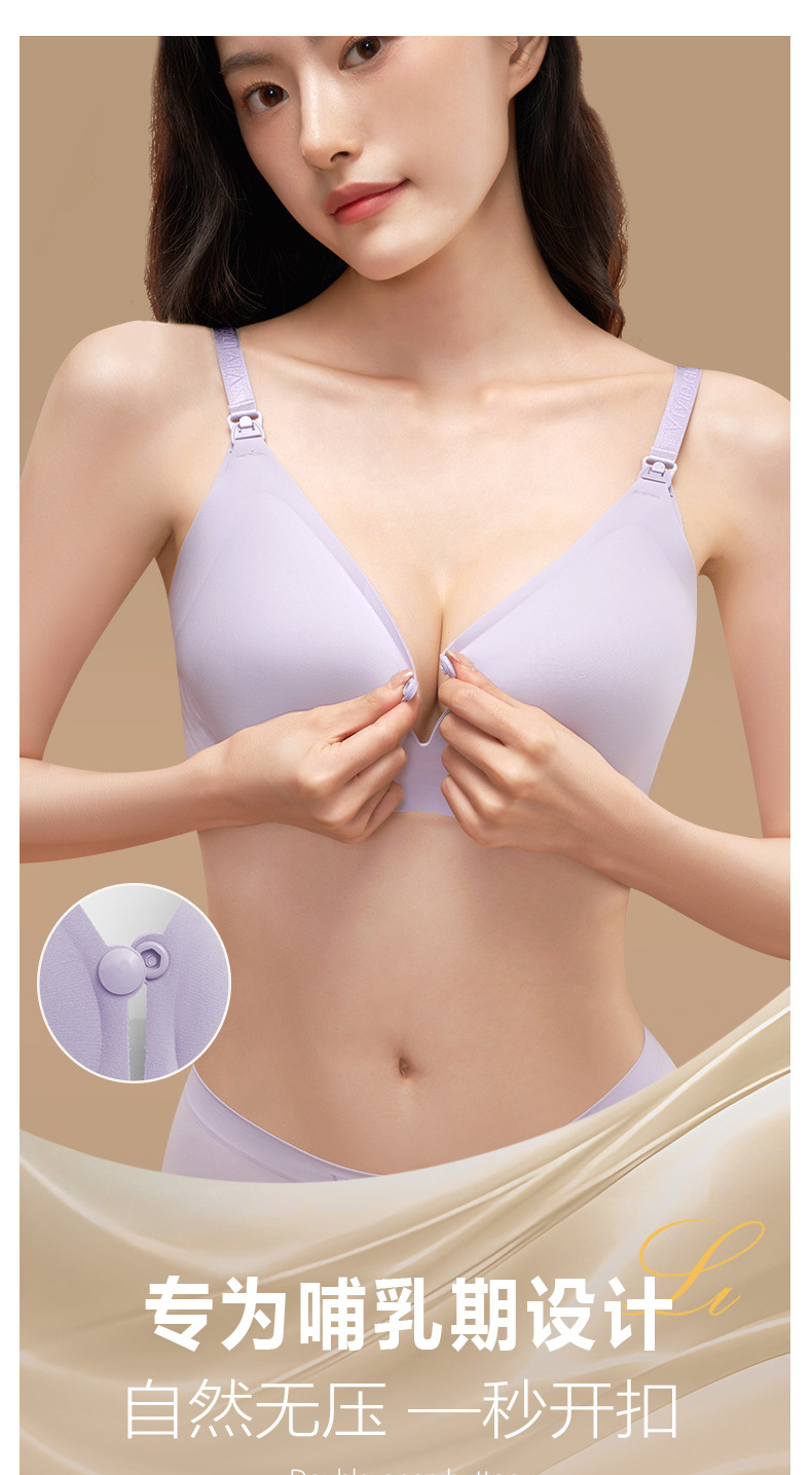 新款哺乳内衣防下垂不跑杯7A抗菌无痕聚拢透气双开扣哺乳文胸