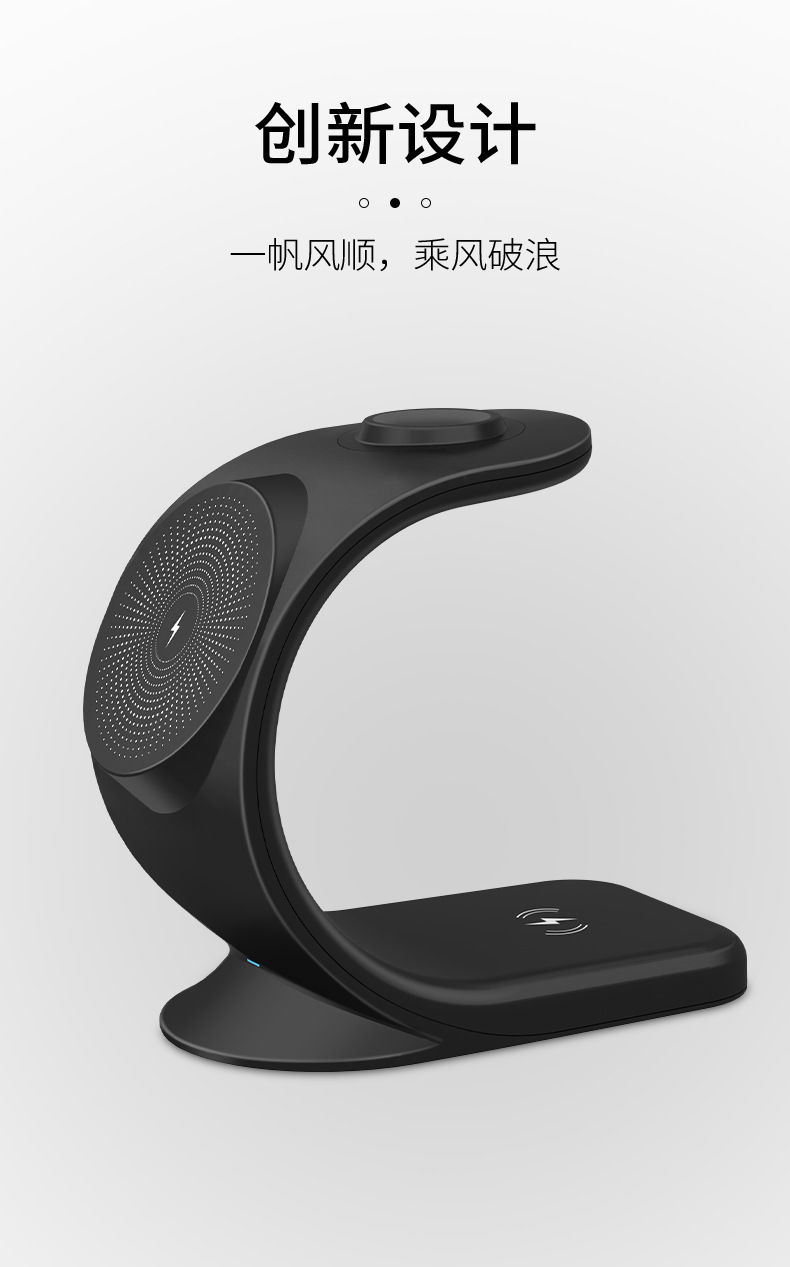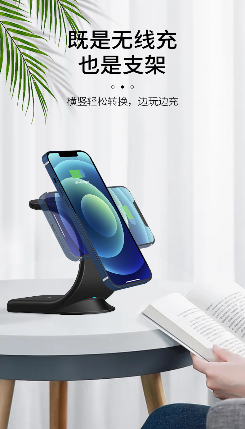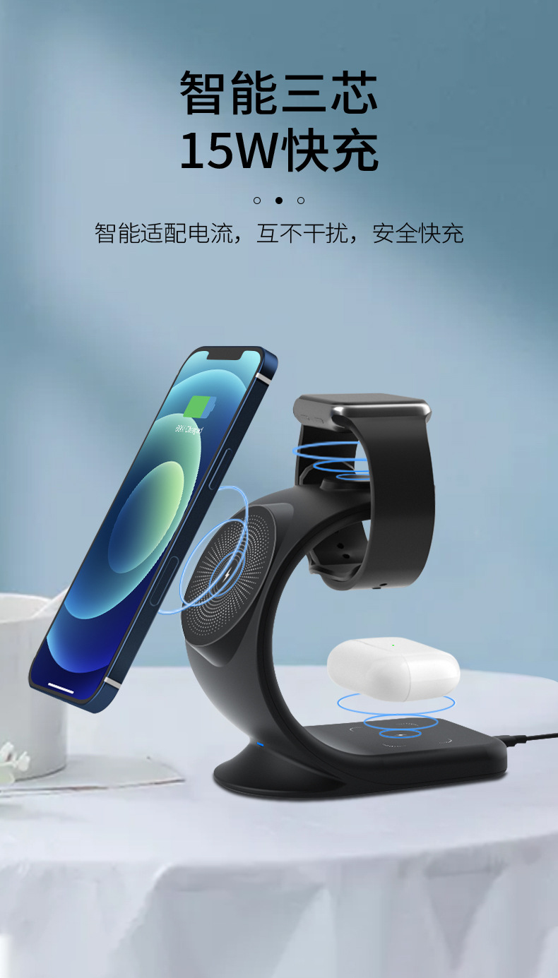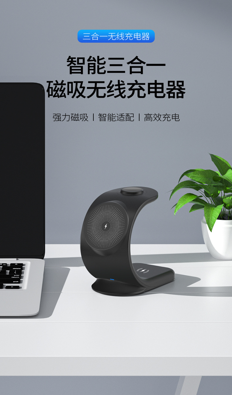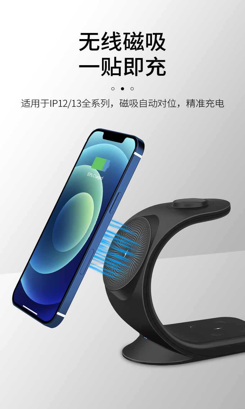 三合一磁吸无线充电器适用苹果15手机耳机手表立式支架无线充