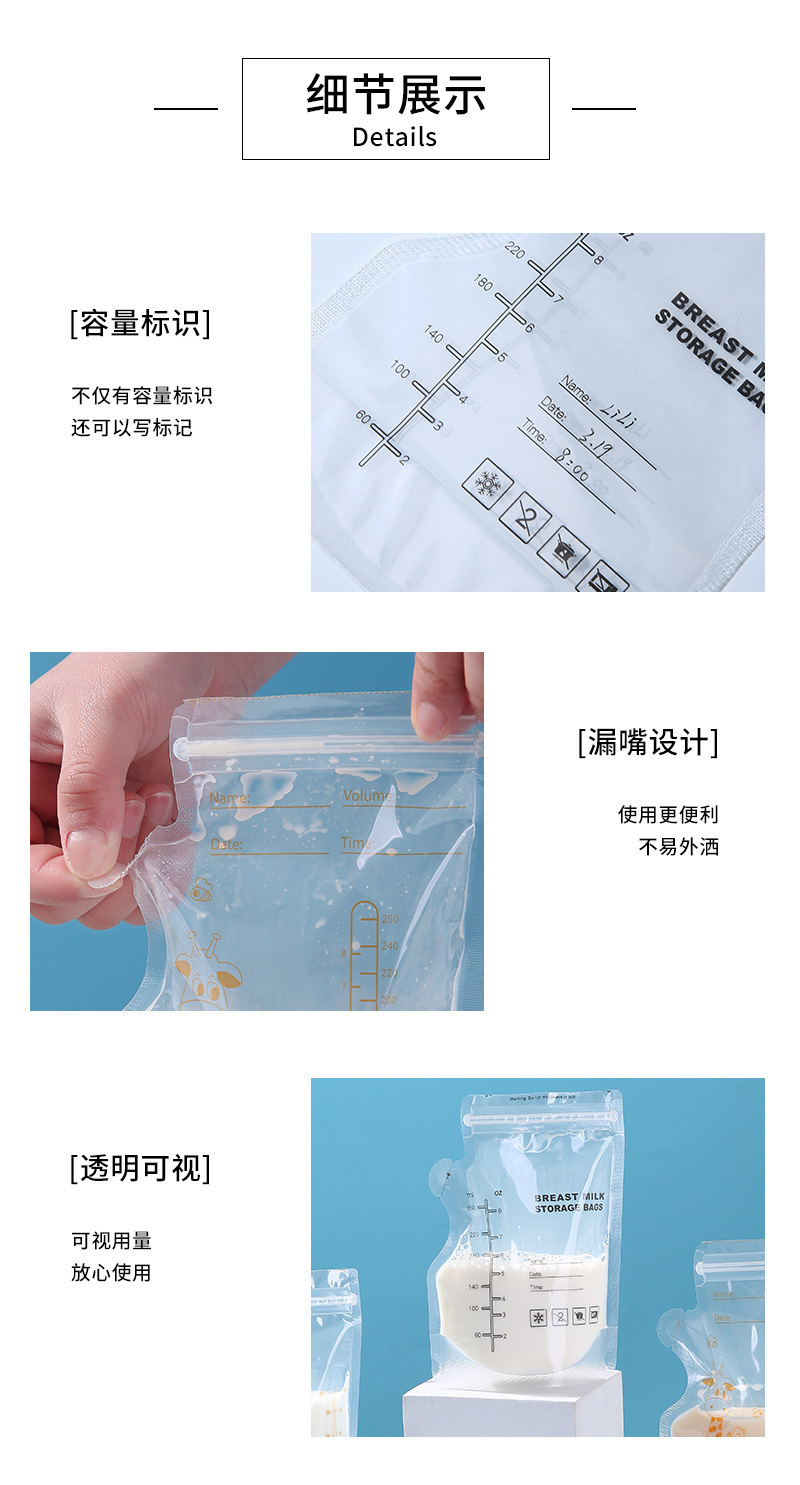 250ml储奶袋双层防漏母乳袋全英文母乳保鲜袋出口FDA