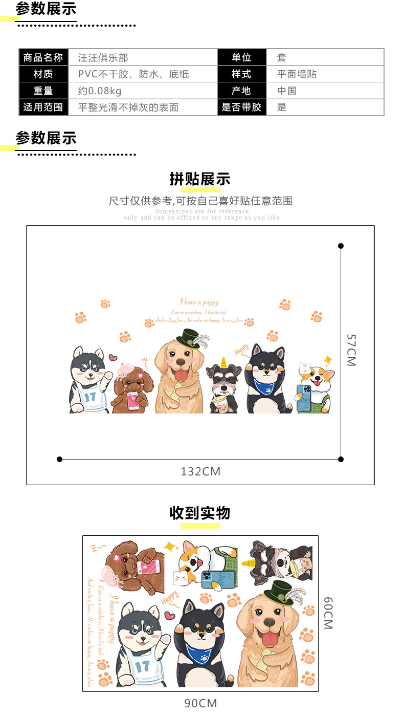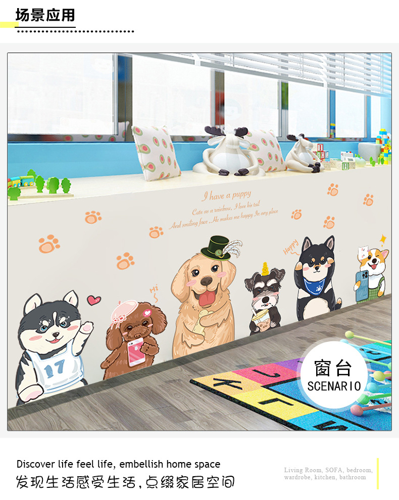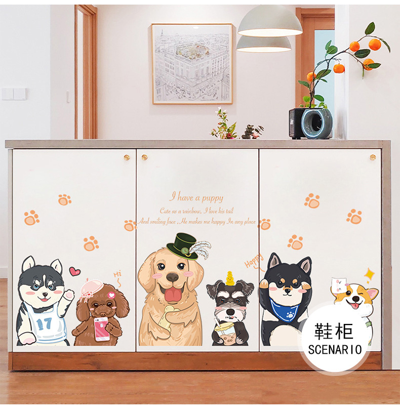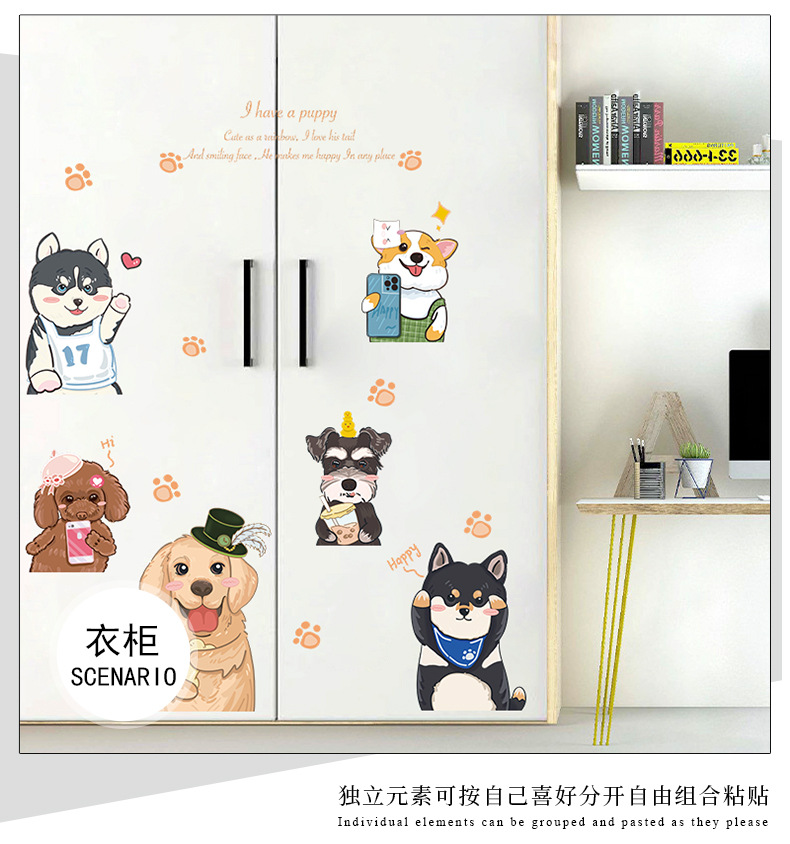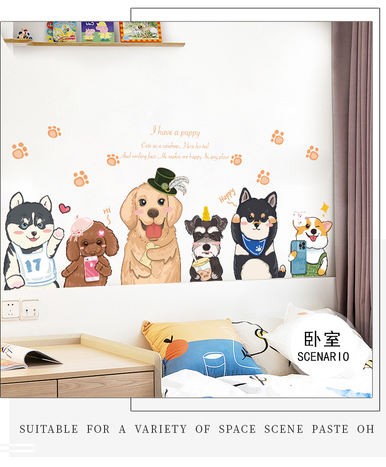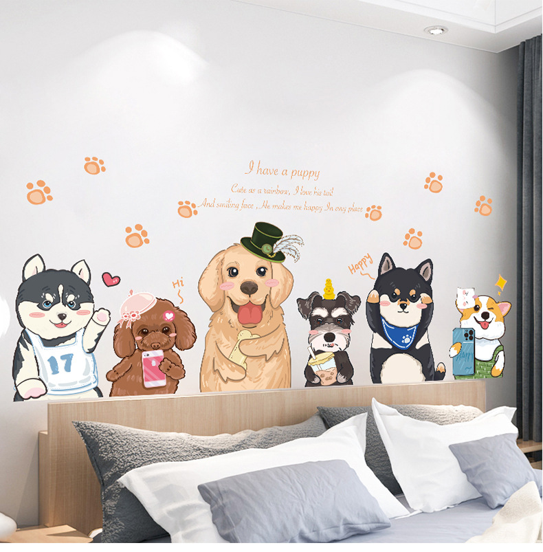 可爱卡通狗狗墙壁贴画儿童房间布置墙面装饰贴纸3d立体墙贴纸自粘