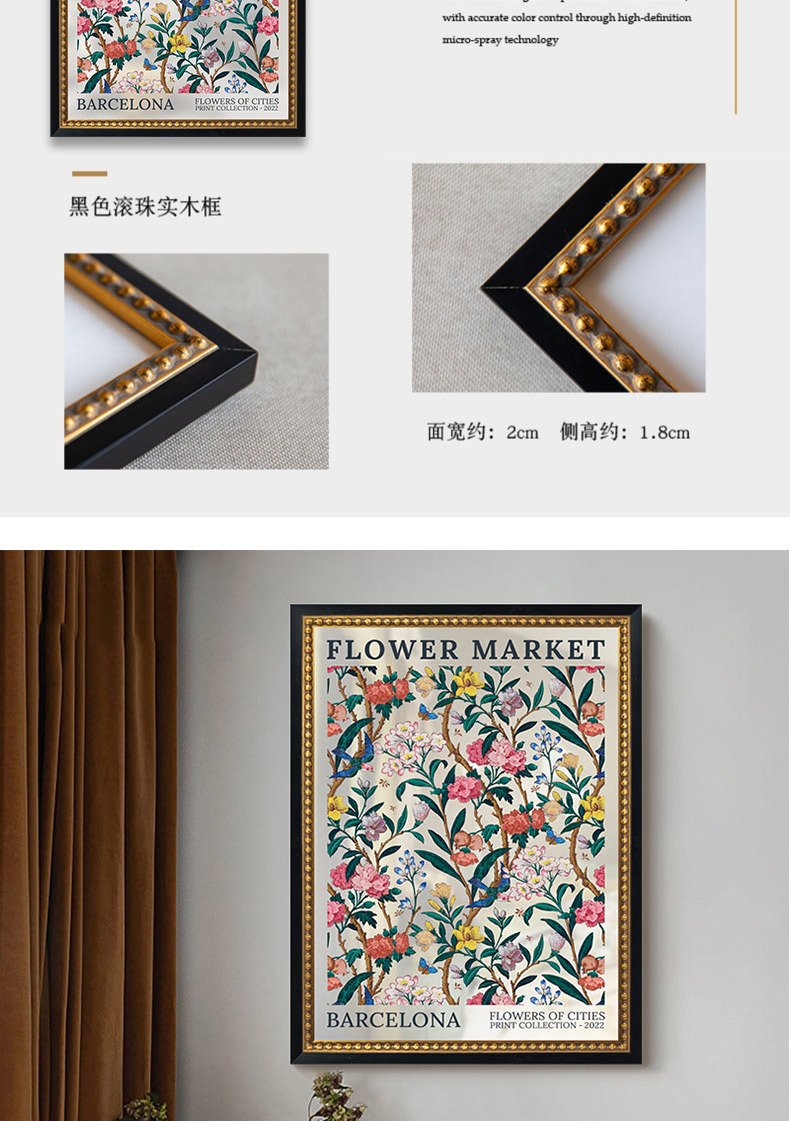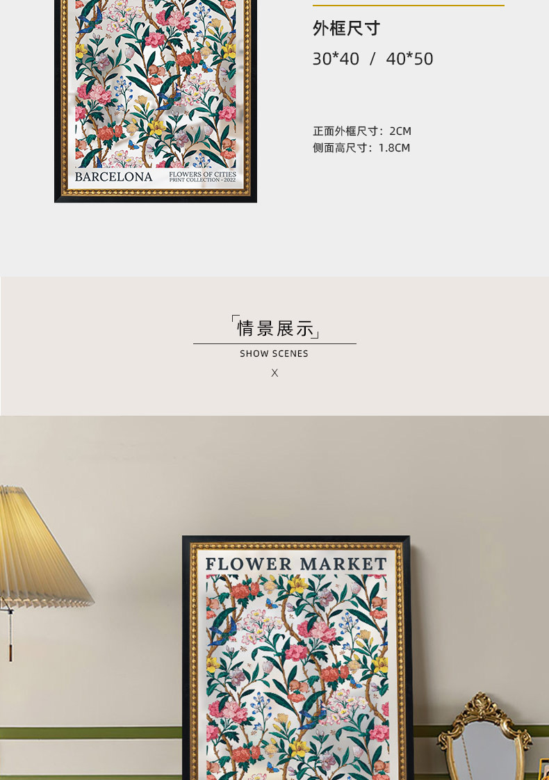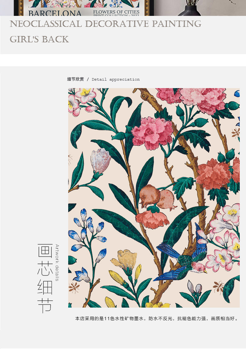 现代美式复古镜面画法式玄关花鸟镜子挂画客厅卧室装饰画软装摆画